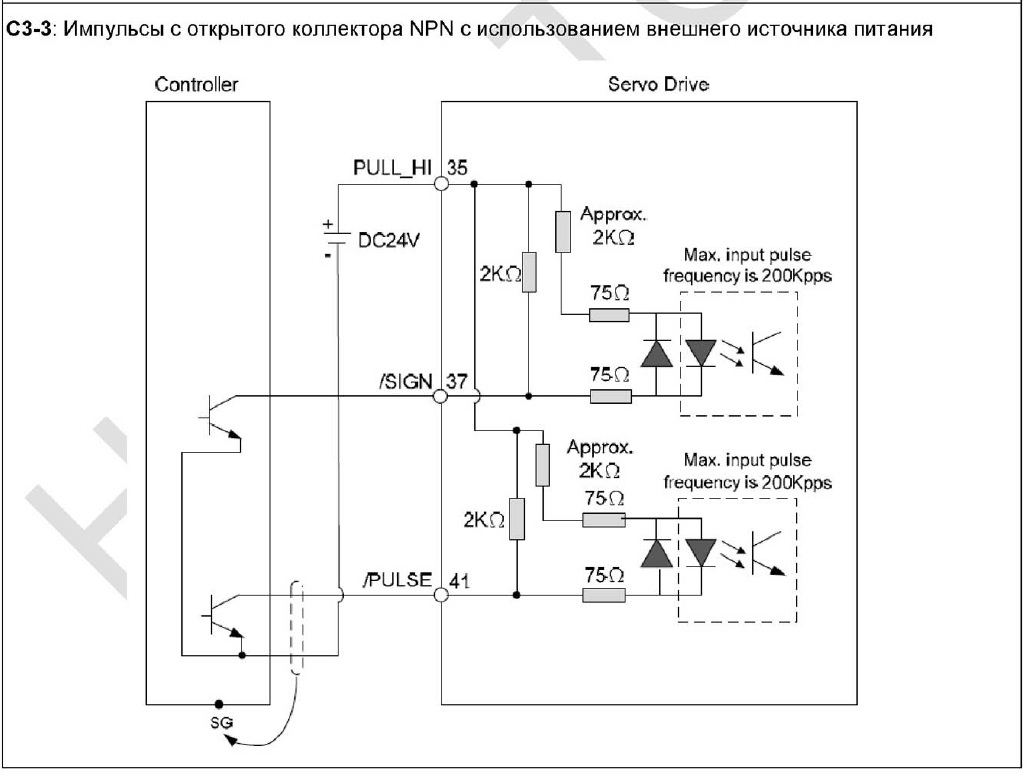 Вот тут собственно и вопрос. Выходы с K-FLOP TTL (5в) либо LVTTL (3.3В). Если на вход усилителя PULL_HI подключить 5В (или 3.3В) на входы /SIGN и /PULSE подать сигналы степ-дир напрямую от K-FLOP, заработает ли? На схеме 24В указан источник питания. К тому-же в мануале на k-FLOP указано что ток на выходах не должен превышать 10мА. Или разводить это через быстродействующую опторазвязку?