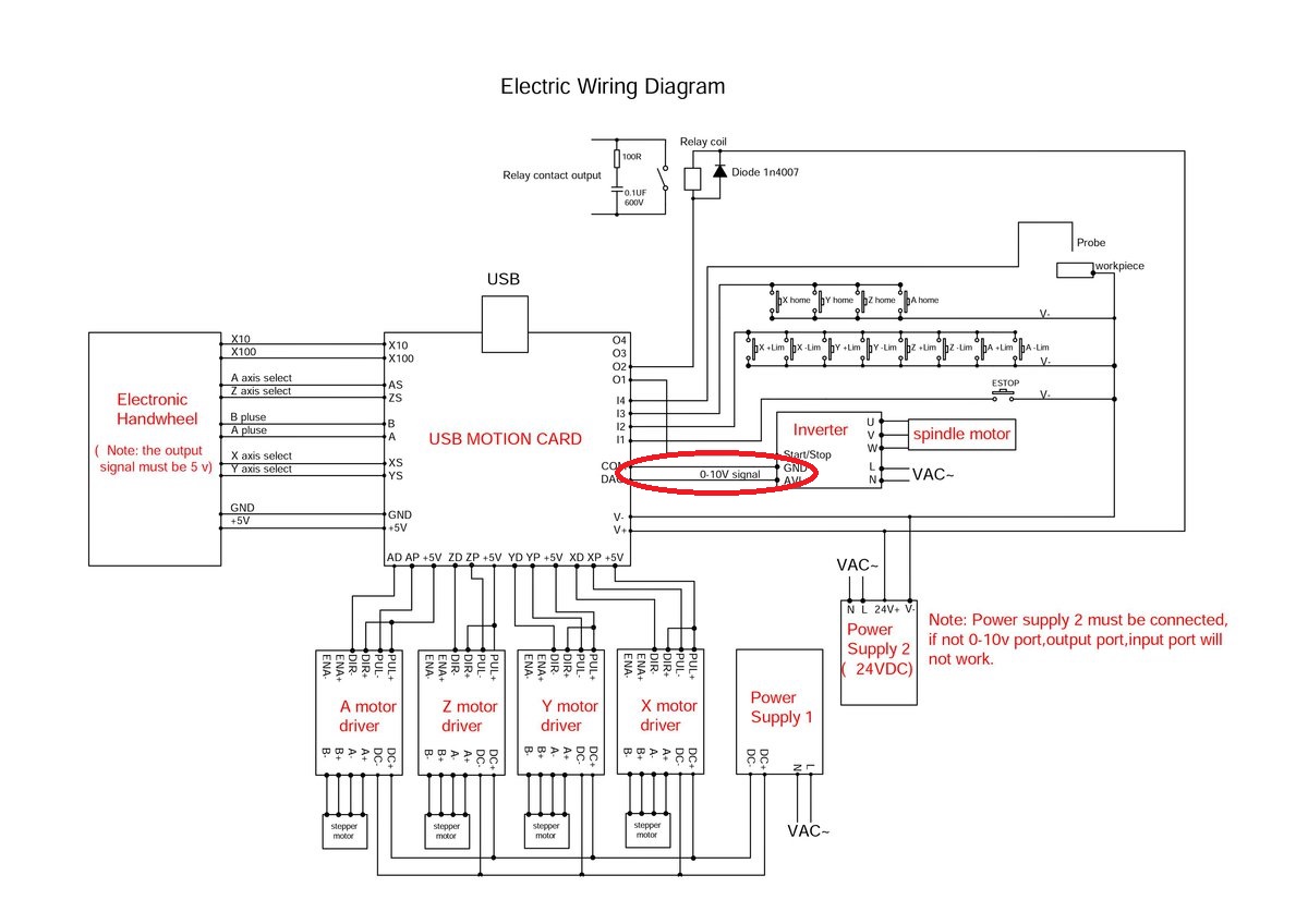 Так как плата USB выдает 0-10 вольт, то нужно на сигнальную линию 0-10 вольт между ней и платой управления шпинделем поставить делитель напряжения 1:2.