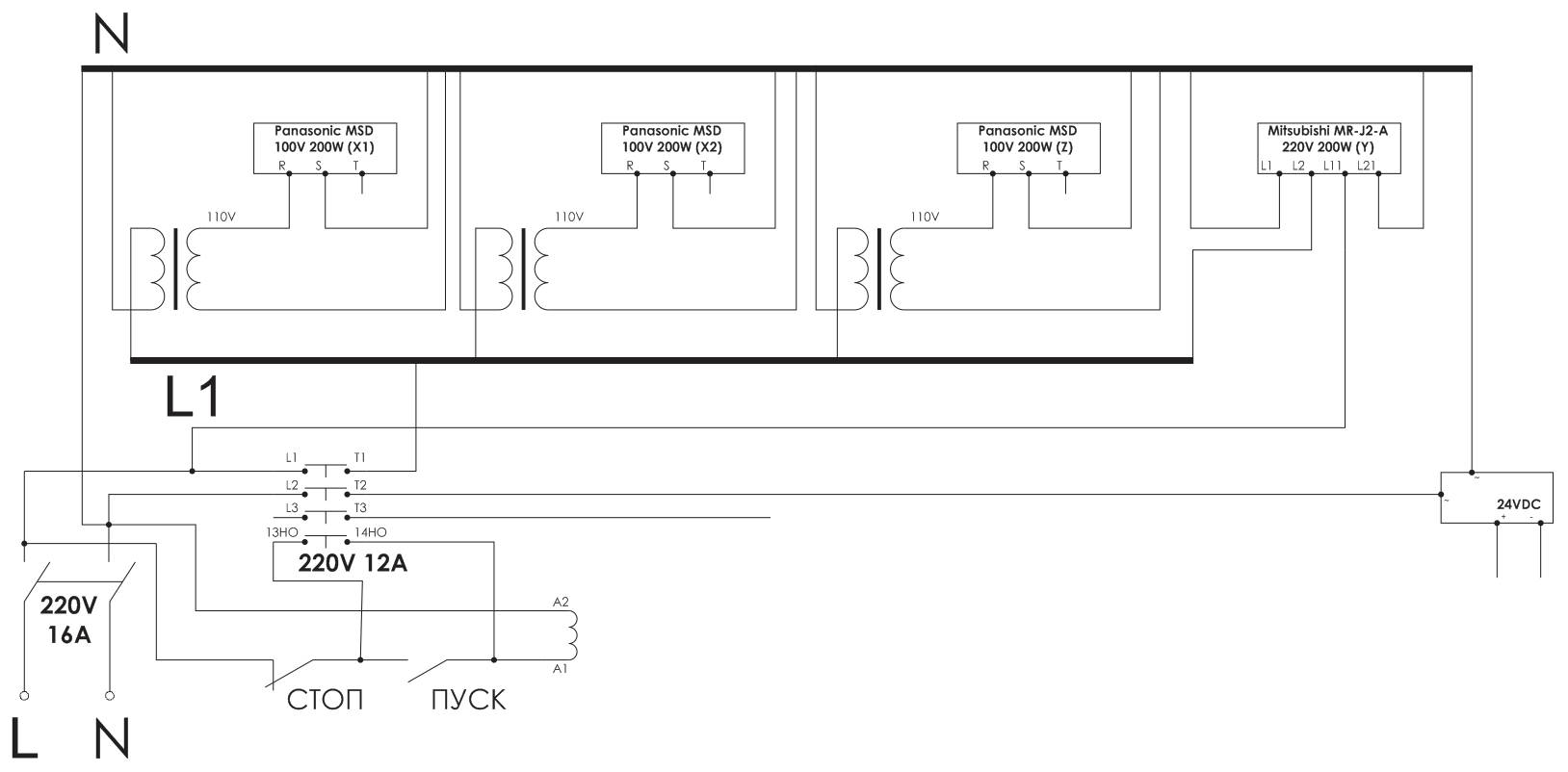 А вопрос то где?Nikomas писал(а):Друзья, т.к. покупать магнитный пускатель на каждый сервопривод затратно (их пока 4 шт.), в шкафу решил посадить все на один пускатель. После пускателя выходят две шины "фазы" и "ноля". Вот накидал схемку. Пускатель с кнопкой с "самоподхватом". По сути, у пускателя 4 группы контактов, и можно "фазу" каждого привода завести на пускатель, а для "ноля" сделать общую шину, но на пускатель хочу еще повесить и БП для управляющих сигналов.