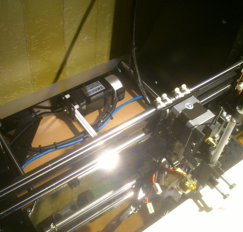 На первом этапе экспериментов в 3D принтере был заменен шаговый двигатель оси Y, который передвигает стол.