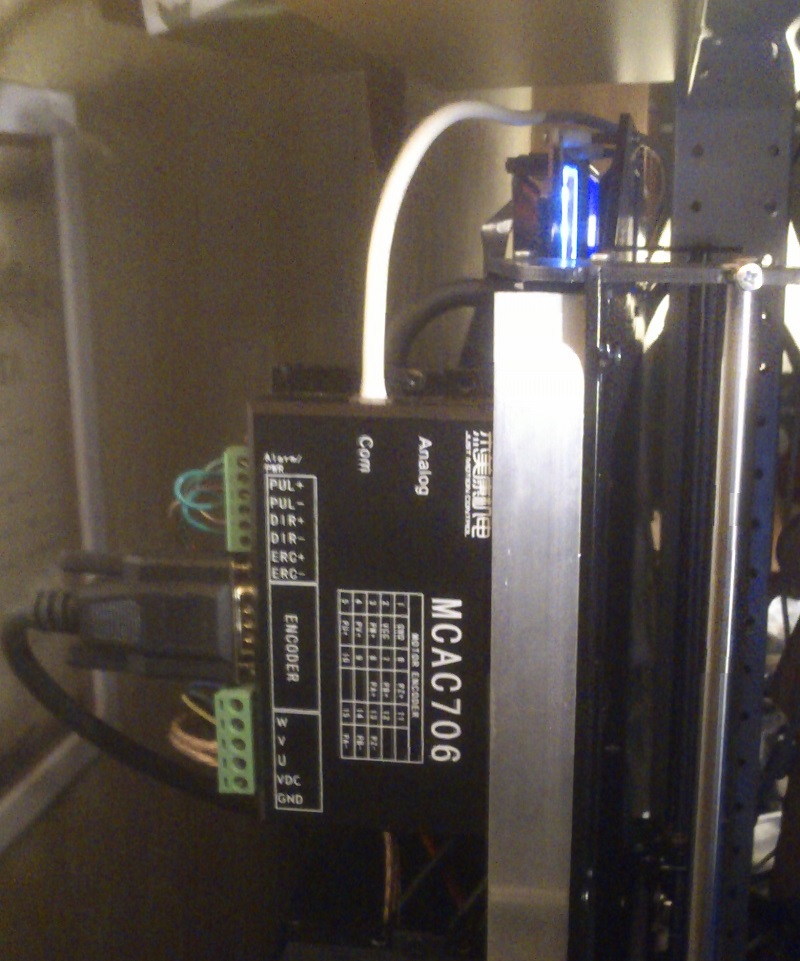 Теперь как это все заработало. По описаниям вроде это настоящий серво мотор, заявлен энкодер 1000линий на оборот (4000 импульсов Step на оборот). Путем долгой переписки с китайскими товарищами производителя JMC была добыта настроечная программа с английским интерфейсом и актуальное описание серво-драйвера MCAC 706. Для соединения с компьютером наколхозил шнурок USBtoCOM, обжал джек на 6 контактов.