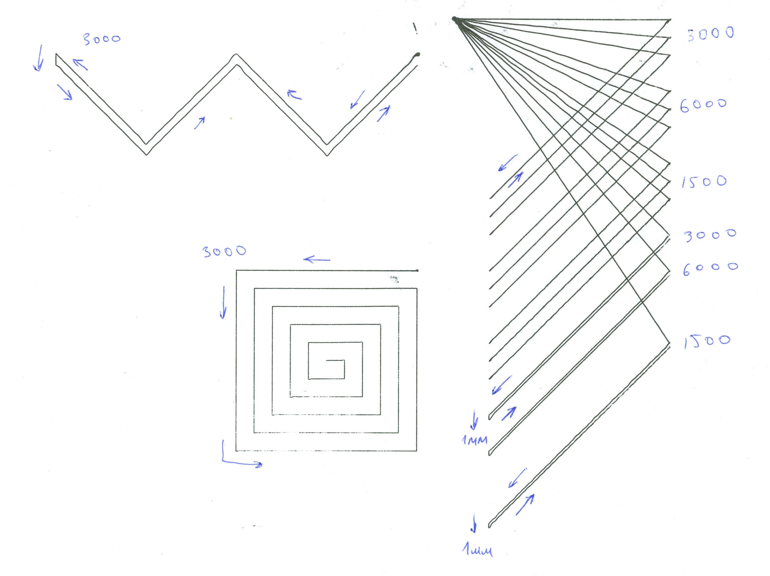 Дальше хуже. Когда я начал рисовать диагональные прямые, одновременно перемещая стол (ось Y) и головку (ось X), выяснилось что скорость перемещения стола не равномерная. Стол, движимый испытуемым серво мотором двигается рывками. В результате диагональная линия получается волнистой. И это пока поставило в ступор весь проект.