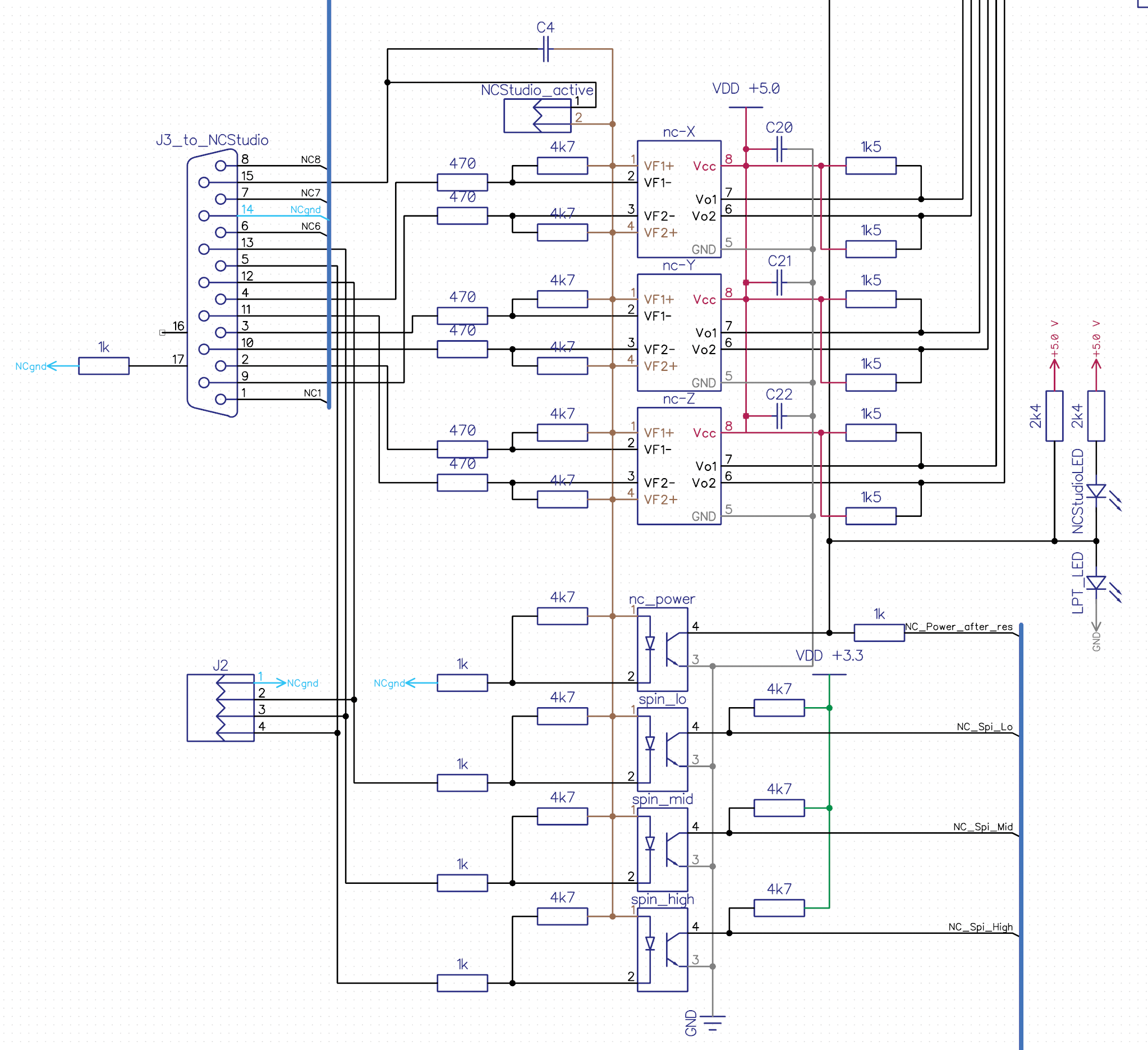 Из за этого оптопара (nc_power) отвечающая за активацию NCStudio берет +5 В питание от входов и открывается.
