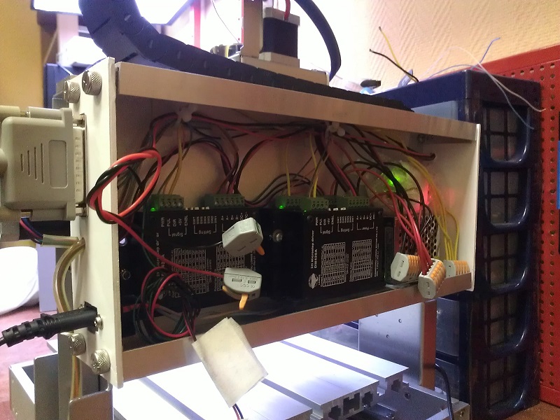 Тоже посещала такая мысль про драйвера. Можно уменьшить количество силовых кабелей и излучаемых в пространство наводок. А если драйвера самодельные - то можно дюралевые элементы станка как теплоотвод использовать, только крышечка нужна чтобы все это включая микропереключатели от пыли закрывать.