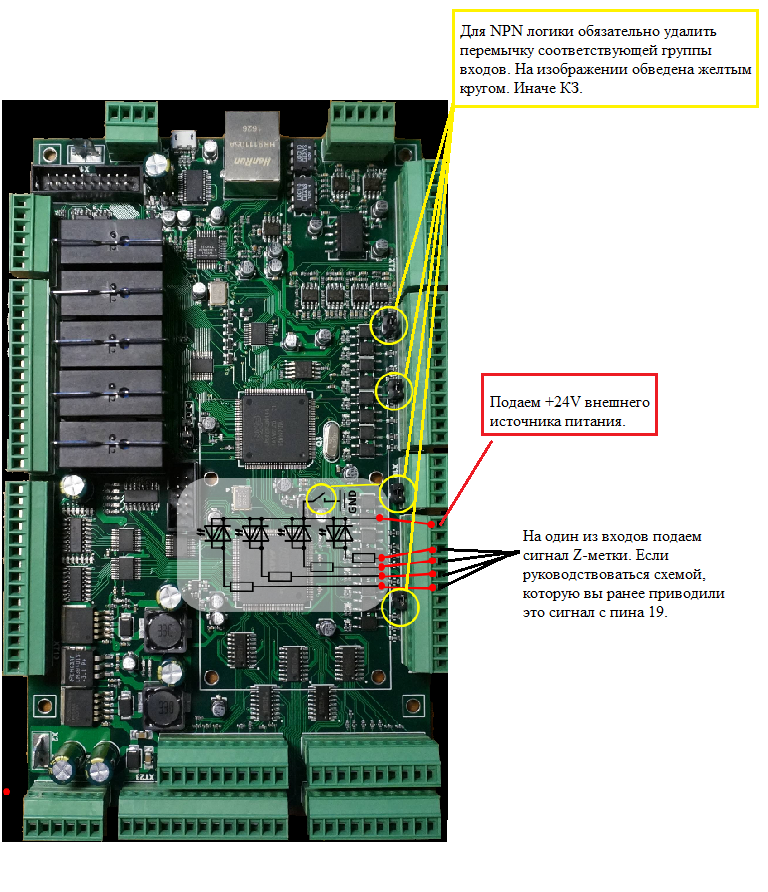 Для активации хоумления по Z-метке установить галку (2). В (3) прописать номер входа контроллера, к которому заведен сигнал Z-метки.