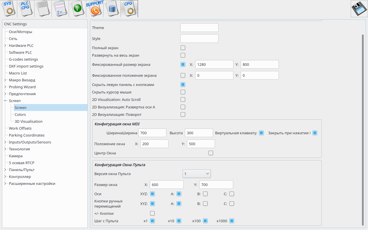 А количество осей и кнопок на основном экране настраивается?