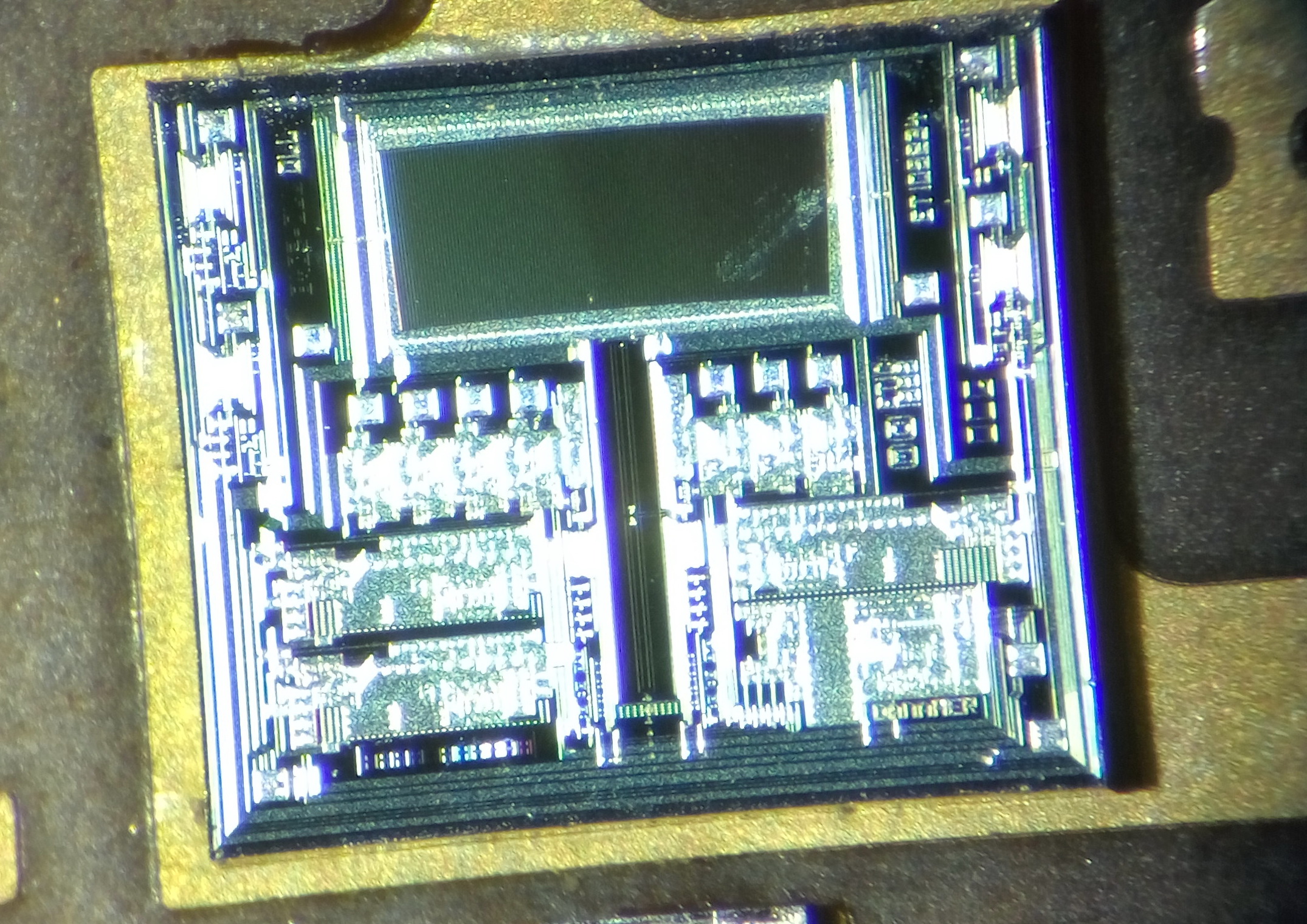 Интереснее тем, что здесь хитрые фотодиоды: они сформированы с повторением формы рисок на растровой пластине. И вот мне не совсем понятно, для чего это сделано, т.к. стоят они обычно на довольно ощутимом расстоянии от стекла энкодера и напрямую без маски работать не смогут. А с маской, закрепленной вплотную к растру достаточно обычных фотодиодов. В общем не совсем очевидный нюанс. Энкодер пока снимать с двигателя не стал - там это не так то просто сделать, поэтому не хочется ломать без необходимости. А без снятия устройство оптического тракта не изучить. Залезу наверное, но позже. Те, что я совал под микроскоп сломаны давно и до меня, поэтому стекла там побиты )))