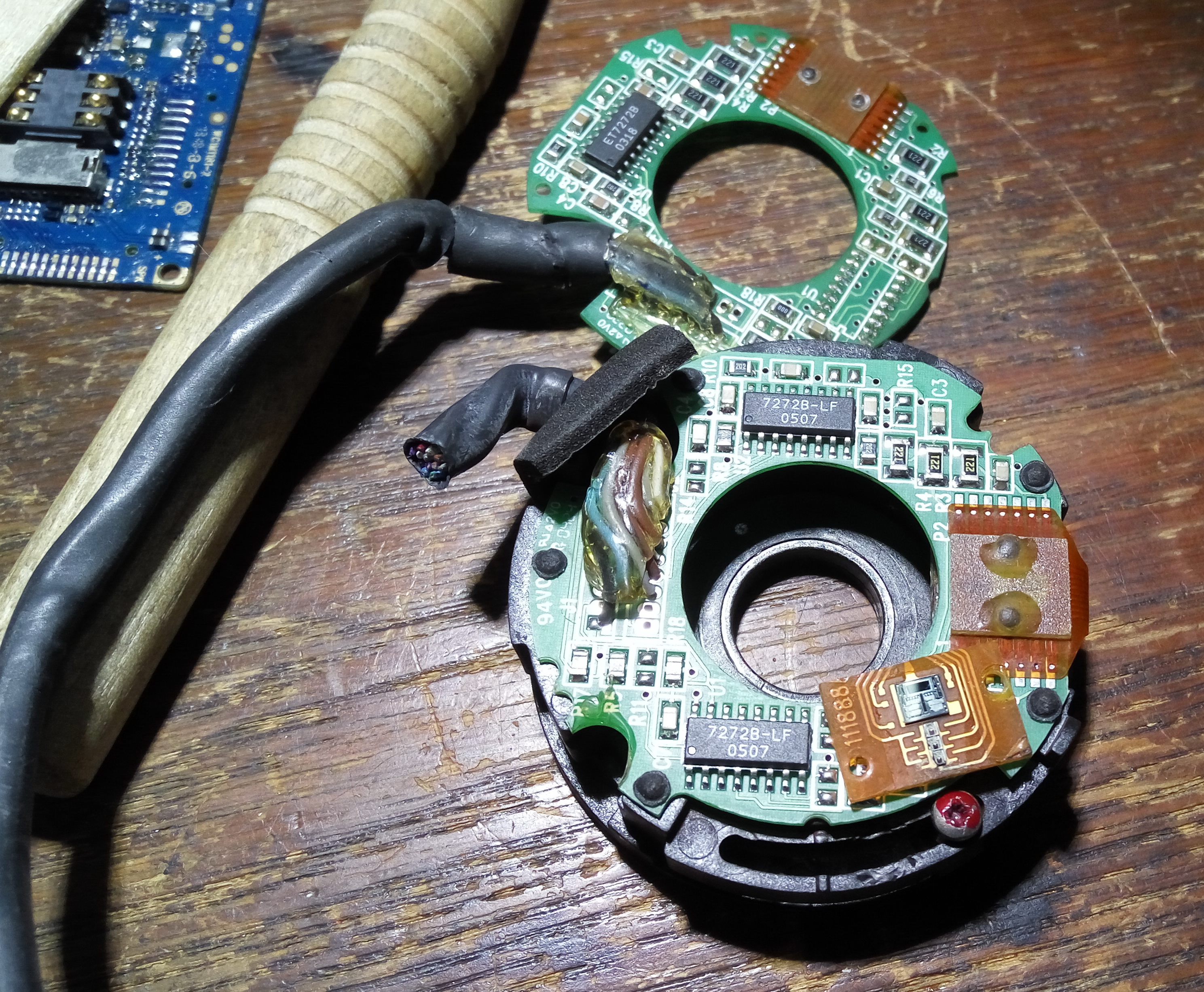 Ковыряю тут движок помаленьку, BLDC с энкодером. Ну и пару таких энкодеров валяется еще, положу сюда фото, чтобы не потерялись и ссылаться в случае чего...