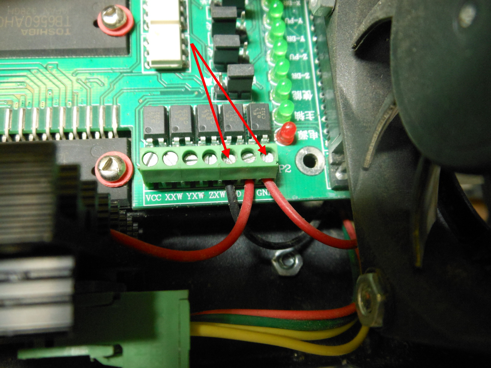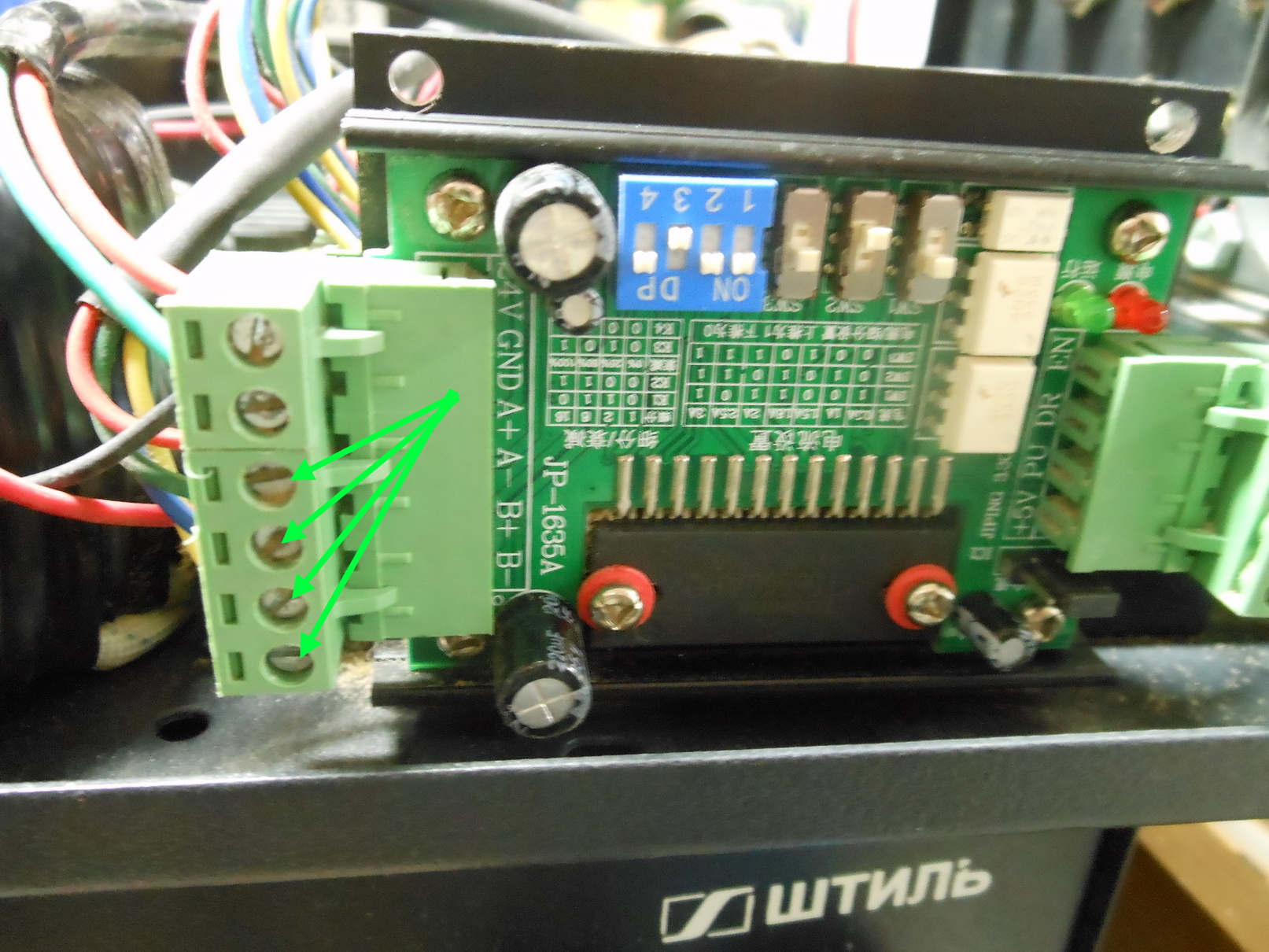 Очень похоже, что один разъем для подключения 4 оси А, а тот двухконтактный с двумя черно-красными проводами на входы оптронов на плате, скорее всего датчик инструмента.