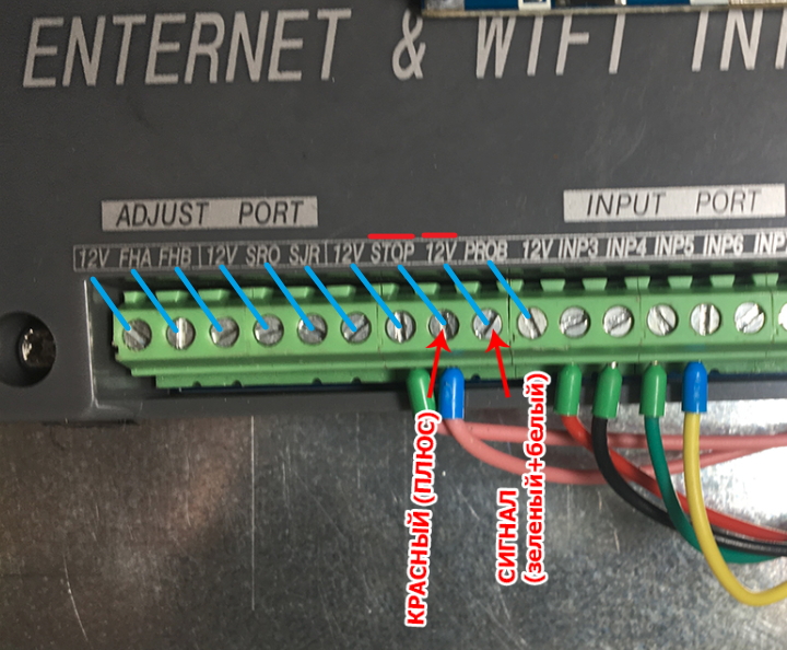 Посмотрите каждый контакт смещен по отношению к надписи... Вы по моему не на те клеммы провода подключаете, надо, как я понял, 12v и PROBE ?