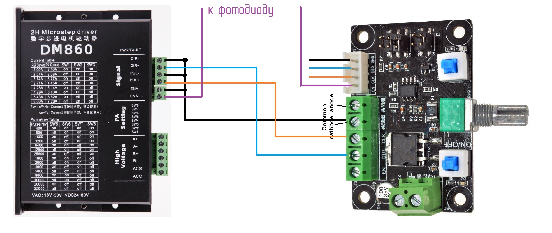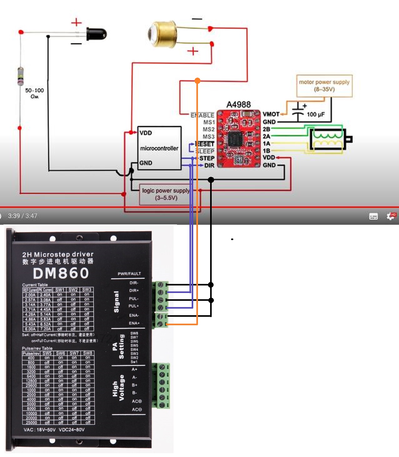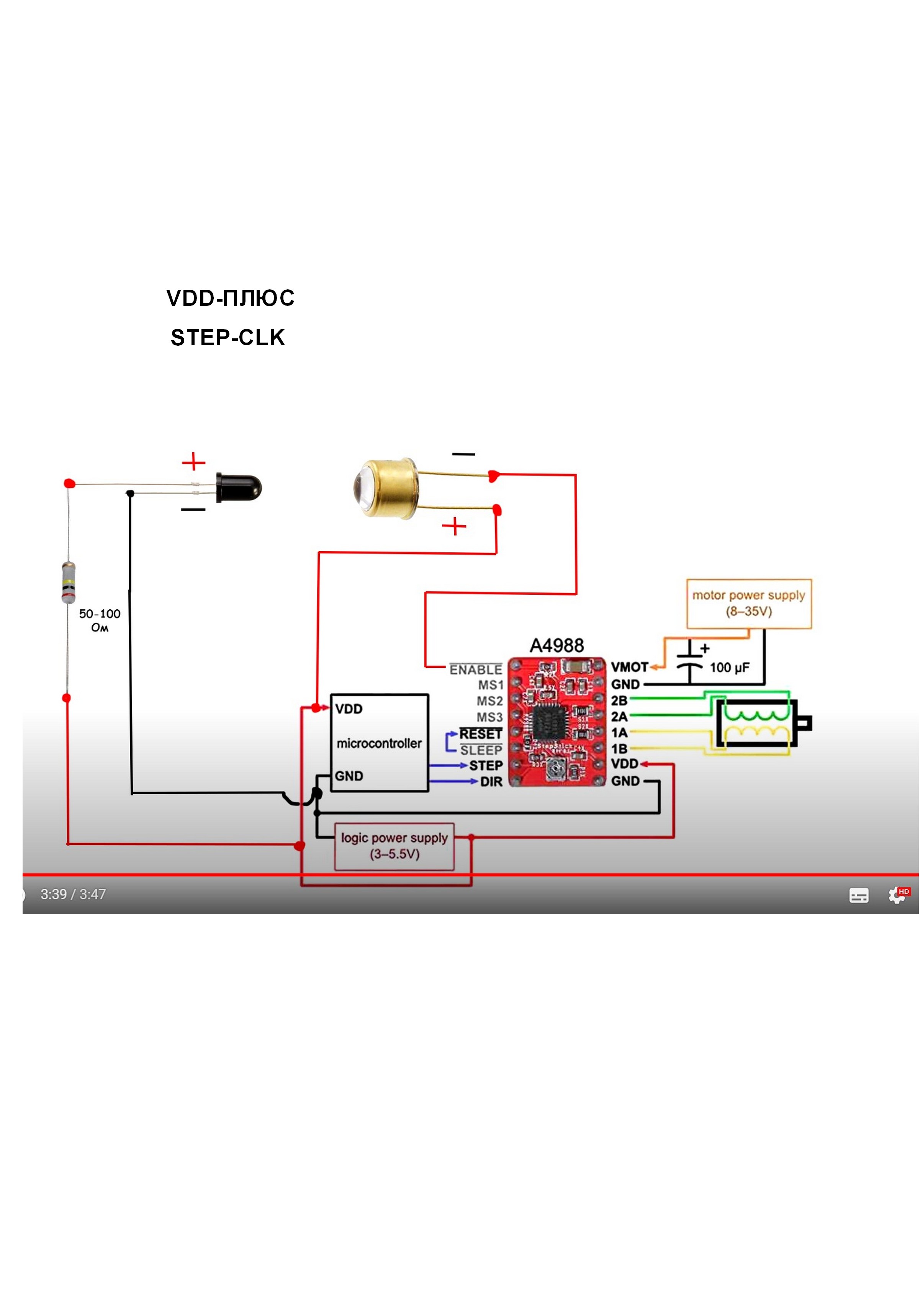 Реализована схема подключения драйвера А4988, нашел на Ютубе.