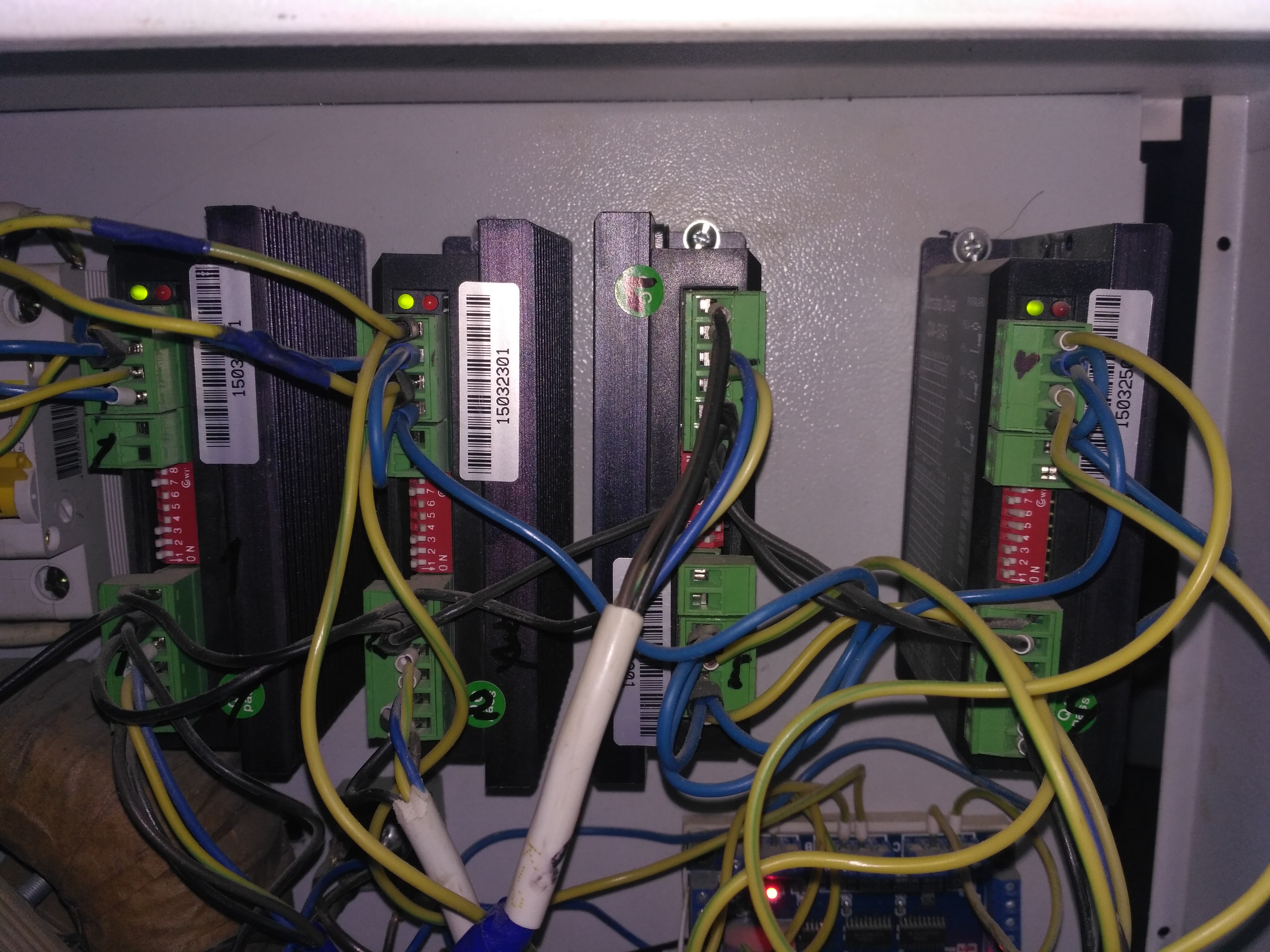 Получаеться у меня на драйверах контакт PUL+ идет на PUL- интерфейсной платы. А контакт DIR+ на контакт интерфейсной платы DIR. На самих драйверах контакты DIR - и PUL- замкнуты перемычкой и выходят к контакту GND(а надо СОМ)