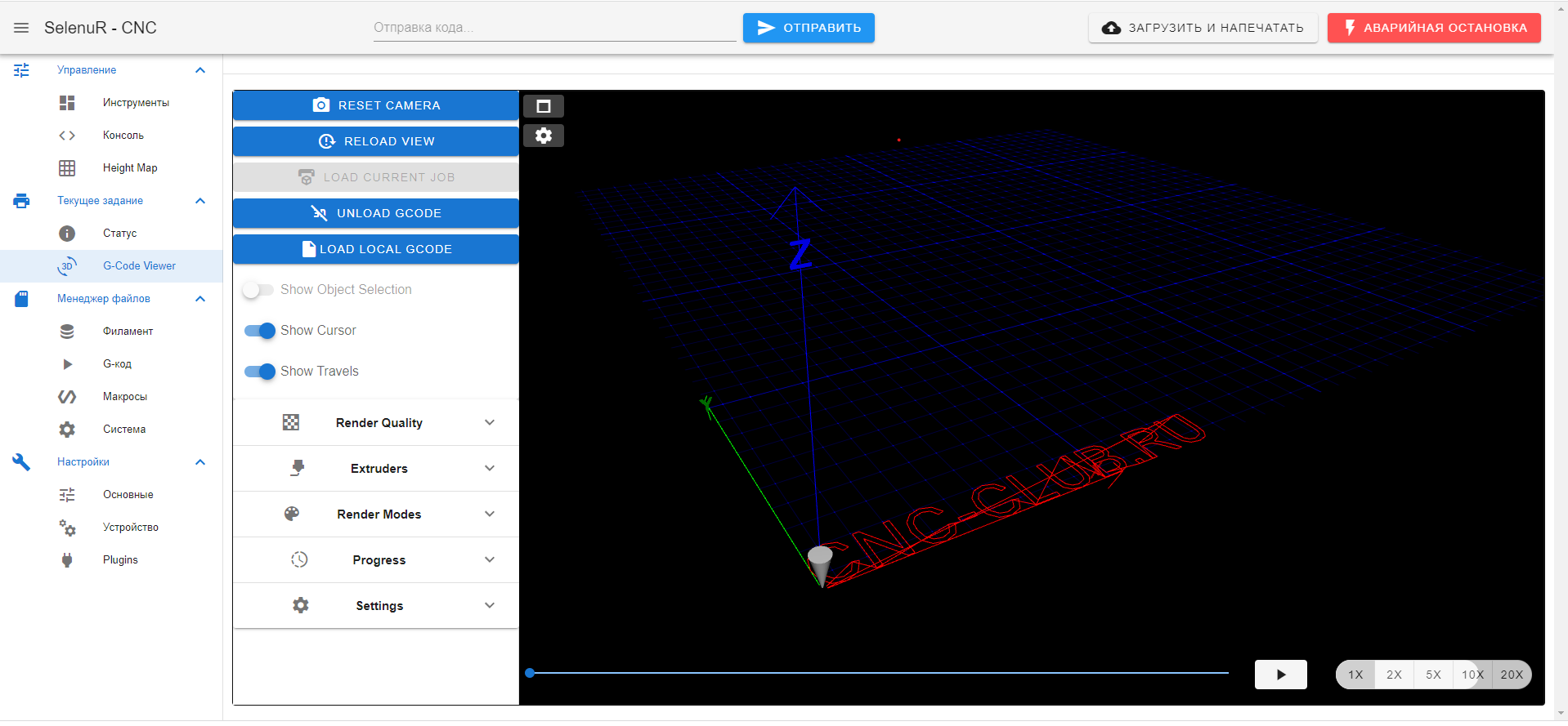 Вышло очередное обновление для контроллера, благодаря которому теперь можно добавлять плагины, которые можно использовать при подключении к контроллеру по Wi-Fi с телефона или компьютера с использованием браузера, например просмотр G-кода: