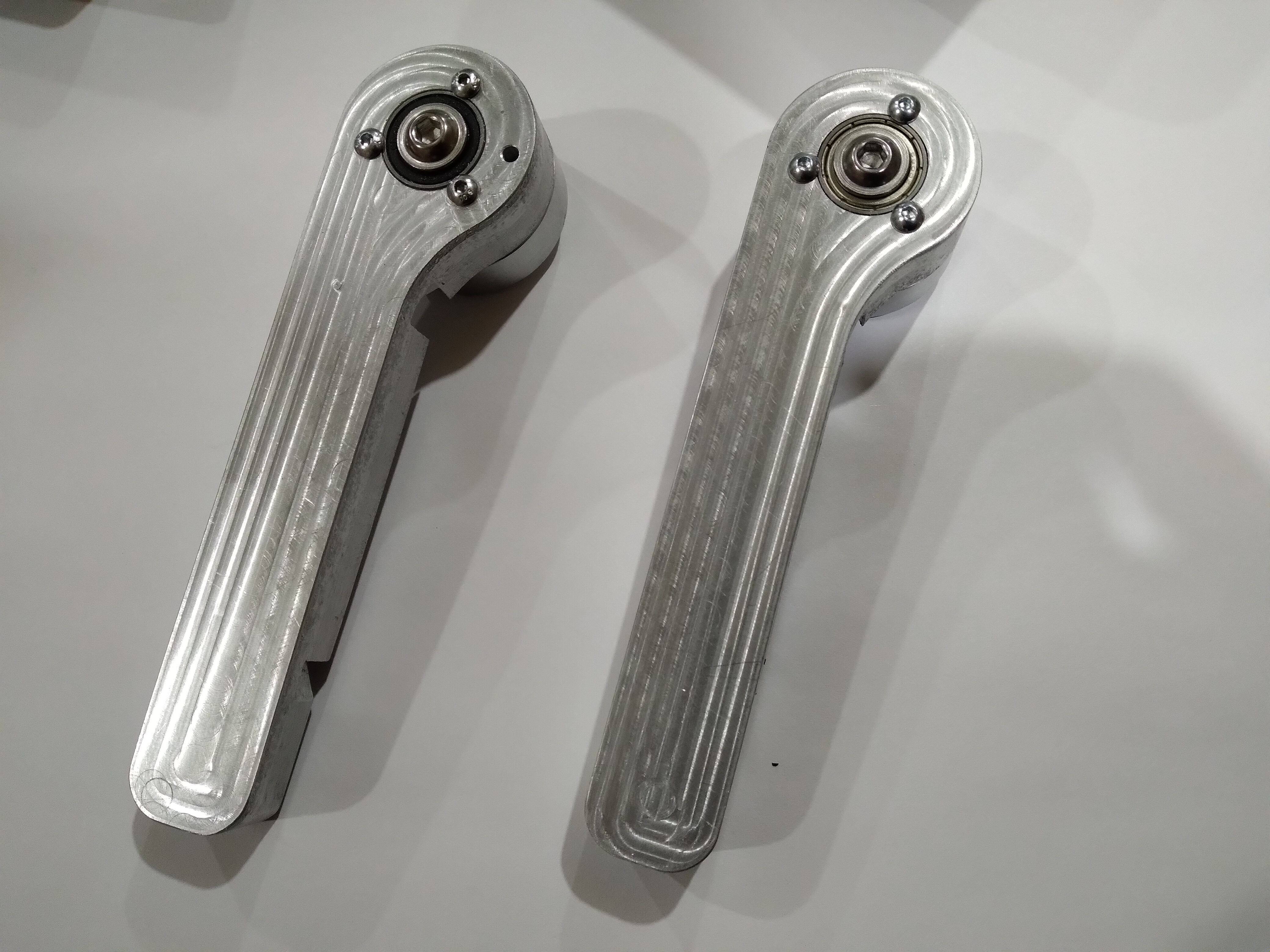 С виду штанги одинаковые. Но по факту в одной из штанг было шаманство с фрезеровкой под пружину. Нужно было подобрать такие параметры опорной поверхности кармана, чтобы пружина не изогнулась и в то же время давала максимальный прижим. Изменена конструкция опоры так чтобы и опора и штанга делались из одной плиты на ЧПУ фрезере. До этого опора делалась сначала на ЧПУ токарном, потом на ЧПУ фрезере.