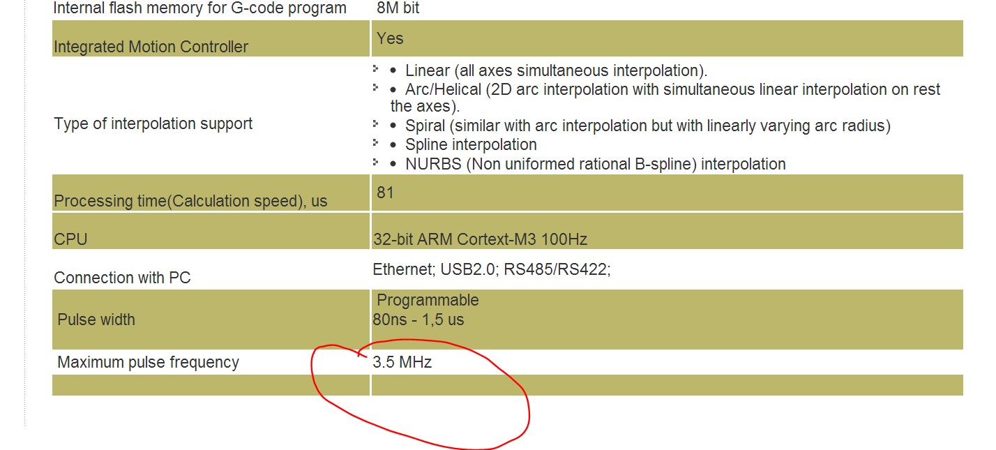 Я веду речь про частоту которую может генерить контроллер. Тема то про контроллер, а не железо станков. Представь чисто гепотетически что твой станок на линейных движках и способен ездить 200м/мин при 1000имп/мм. Вот только не все контроллеры способны будут выдать такое задание.