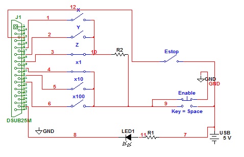 Ну все.E-stop подключен и прописан методом научного тыка, но получилось, все работает. Теперь новая мысля - подцепить на 5 и 6 ось пульта регулировку оборотов шпинделя и скорость подач. Вот тут http://cnc4pc.com/Tech_Docs/guide_for_M ... r_LPT2.htm об этом пишут, но для mach3. На EMC2 наверное тоже можно придумать.