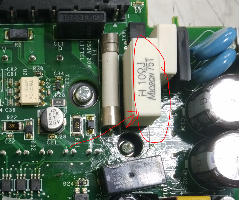 Собрал -проверил. Результата нет. Ошибка та же. Полез искать далее. Реле и диодный мост целы. Предохранитель к сожалению тоже. А вот резистор (10 Ом) шунтирующий реле оказался сгоревшим !!! тоесть резистор сгорел от примерно 22Ампер быстрее чем сгорел 20А предохранитель!!! Японское качество предохранителей поражает.