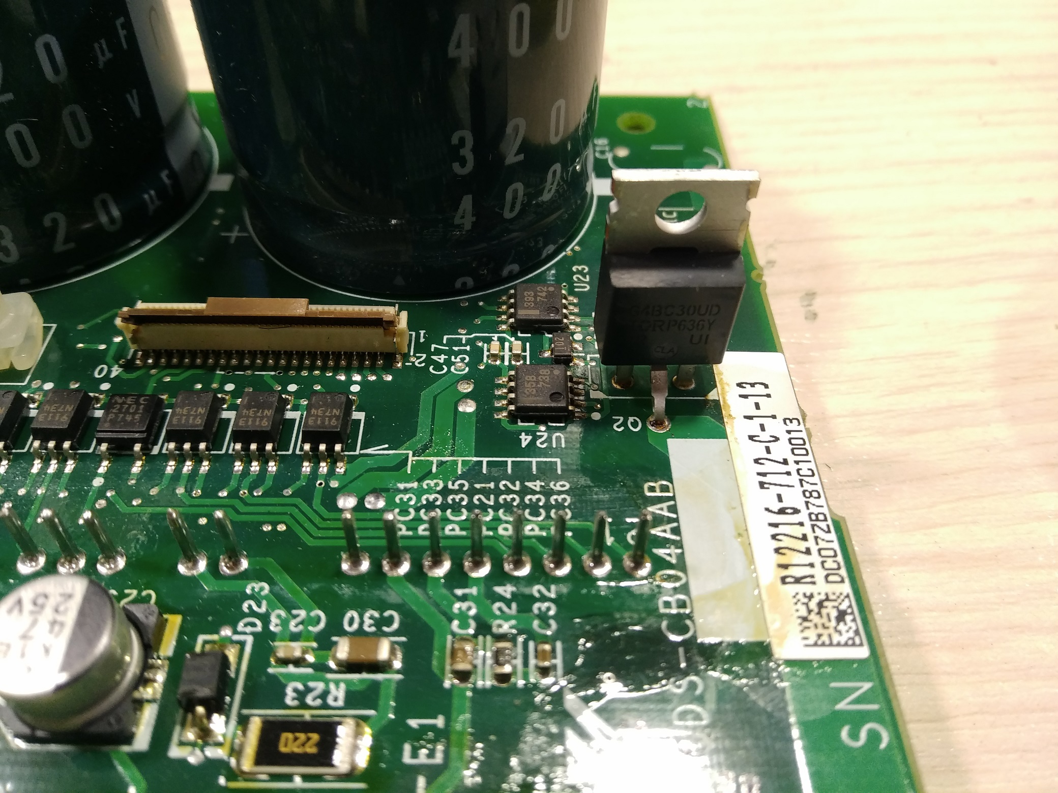 Но ищем дальше. Находим пробитый IGBT транзистор. Он спекся и звонится по всякому, включая изолированный (уже совсем не изолированный) затвор. Проверяем всю обвязку, так как туда пошло 200+ вольт. Как нистранно но все цело и соответствует номиналам. Транзистор IGBT GT15J301: