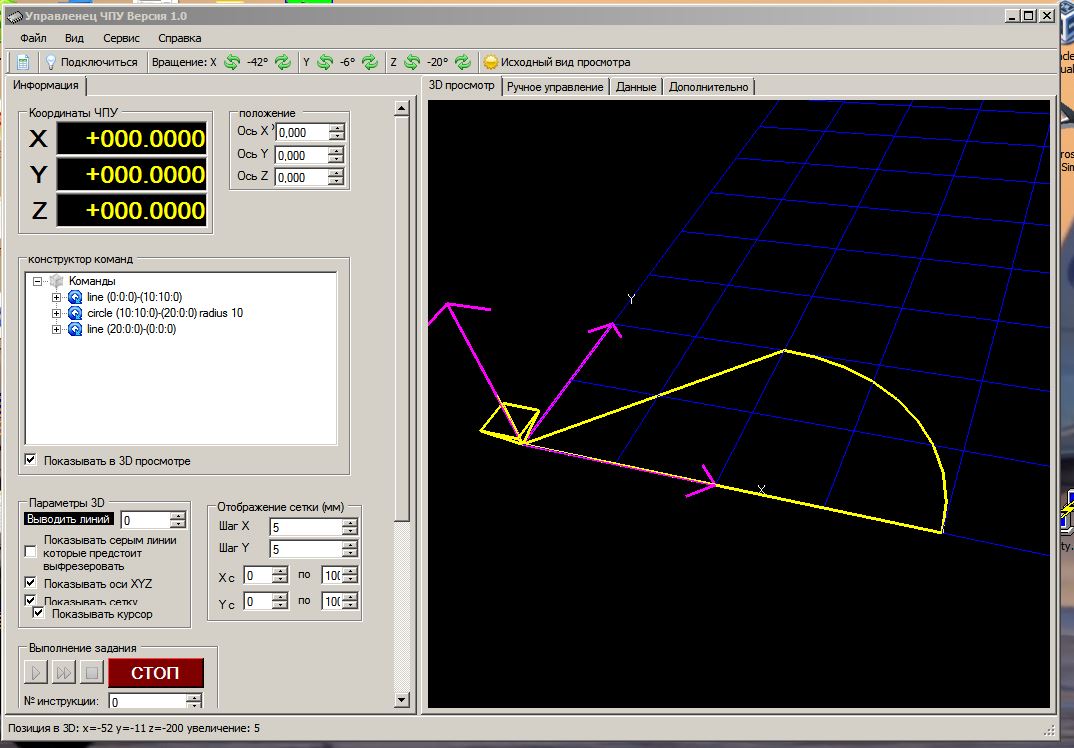 Для более удобной работы я делаю удобную оболочку, альфа версия уже выглядит так: Можно загружать G-код который не имеет окружностей, и получается так: Но в процессе моих задач часто нужно бывает выполнить простые операции, и для того что-бы не ваять G-код в сторонней программе, делаю простой конструктор, с различными примитивами, пока правда всего 2 Третий и четвертый пункт на будущее, но для 4-го пункта уже проверял использование переходника http://tixer.ru/catalog/modules/interfa ... e_ft232rl/ с Андроид планшетом имеющий USB вход, посредством терминальной программки можно рулить уже сейчас.