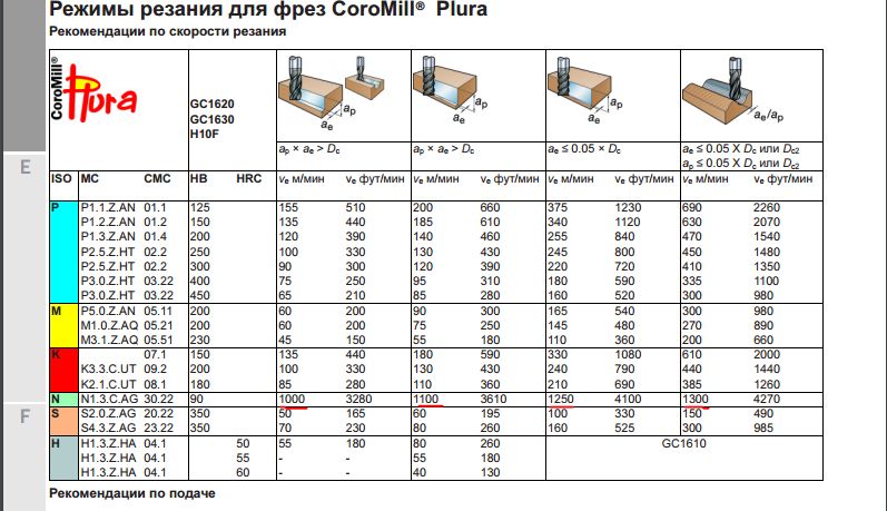 Sandvick монолитки по люминю - 1000м/минmegagad писал(а):Но вот люминь... максимум видел "рекомендации" к хорошей фрезе - 680м/мин, и то только на ОЧЕНЬ жотских станках, исключающих возникновение паразитных вибраций.