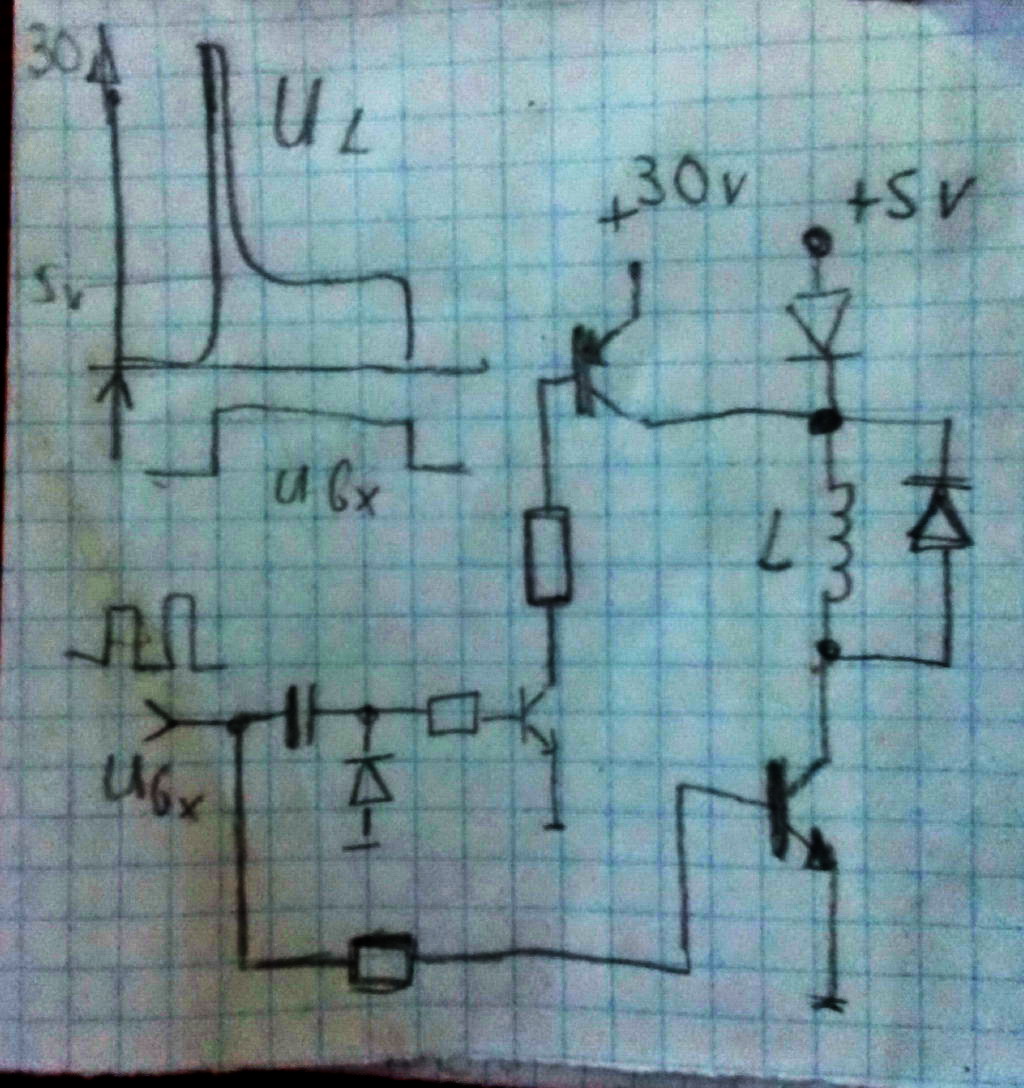 Предполагаю, что вашу схему следует разместить прямо перед подачей на каждую катушку. Но откуда на эмиттере VT2 возьмутся +30 В? Неужели нужен ещё один источник питания? :wtf: