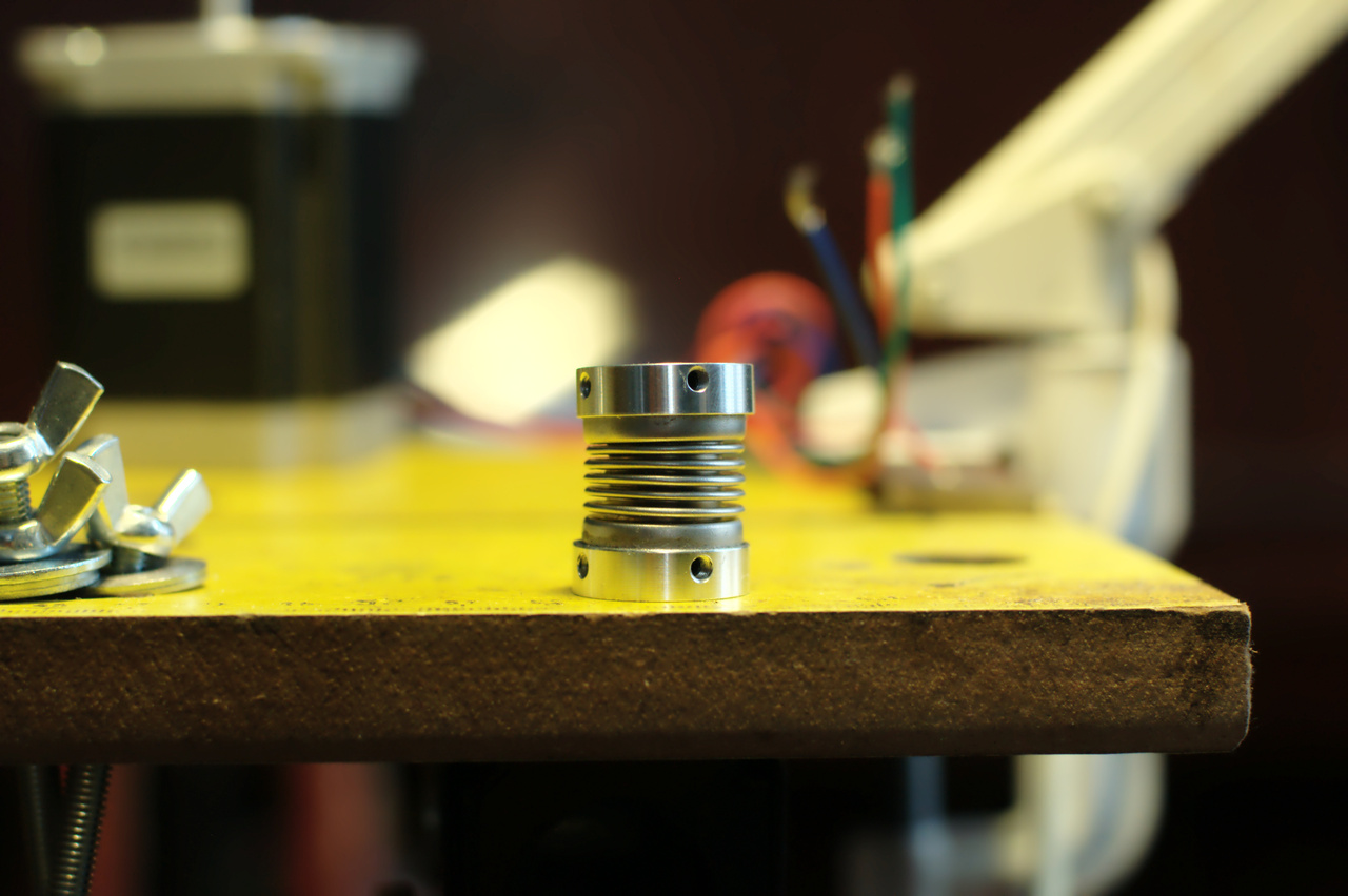 У меня первые муфты были из удлиненной гайки М6. В нее с одной стороны закручивалась шпилька (мой тогдашний ходовой винт), с другой зажимался вал двигателя. Для фиксации вала я сверлил отверстие поперек гайки, нарезал в нем резьбу и фиксировал вал винтом.