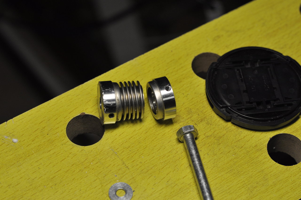 Вот фотографии поломанной муфты. Ей фактически порвало сильфон. Еще у этих муфт постоянно самопроизвольно выкручиваются крепежные винты. Сильно их не затянуть, во-первых, страшно - всего М3 а муфта алюминиевая, а во-вторых, (когда страх прошел) не получается шестигранник очень маленький и он начинает проворачиваться даже при не больших усилиях.