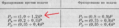 Радиальная сила Рр представляет то усилие (противодавление), с которым обрабатываемая заготовка стремится оттолкнуть от себя фрезу; эта сила изгибает фрезерную оправку и давит на опоры шпинделя.