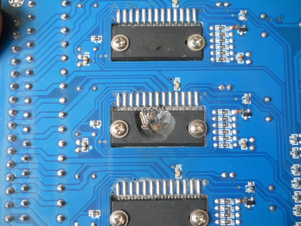 Но стоило запитать плату от нормального БП (36 в 350 вт, напряжение снижено до 32 в) - во-первых очень сильно греются стабилизаторы 12 и 5 вольт, затем подряд выгорают еще две оси.