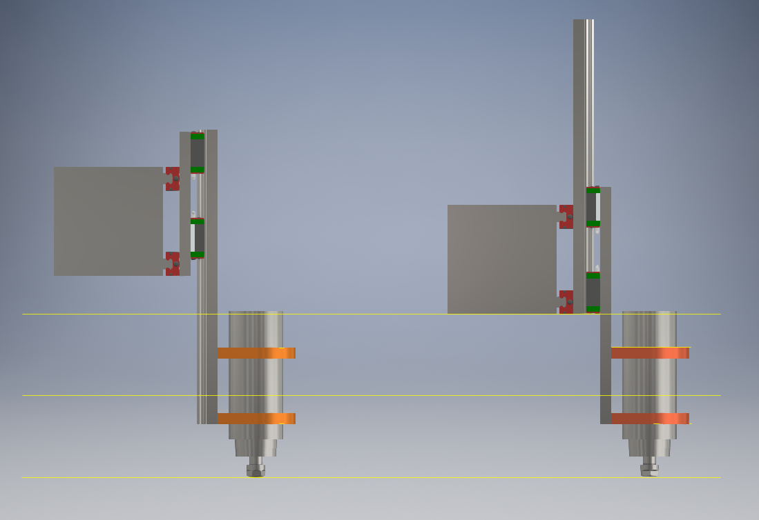Я выложил сборку. В ней оба шпинделя запаралелены связью и ход ограничен в нужных пределах. Можеш сам подвигать поставить хомуты посвоему итд но только разницу плеч не изменить этим.