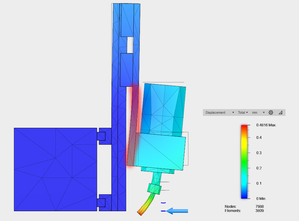 Только тогда можно увидеть, что нагрузки ещё по одной оси внесут свою печальную лепту в жесткость конструкции с рельсами на пластине крепления шпинделя.