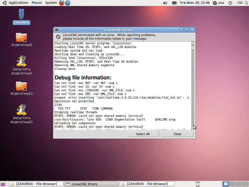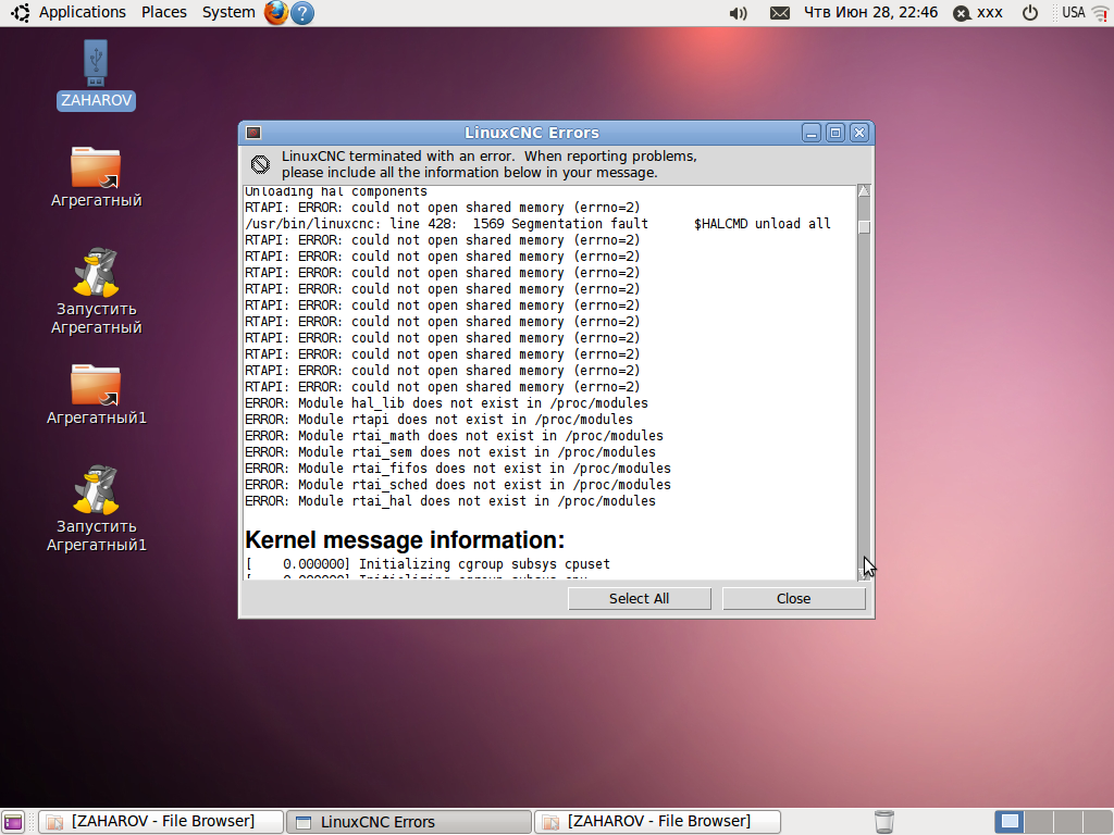 RTAPI: ERROR: could not open shared memory (errno=2)