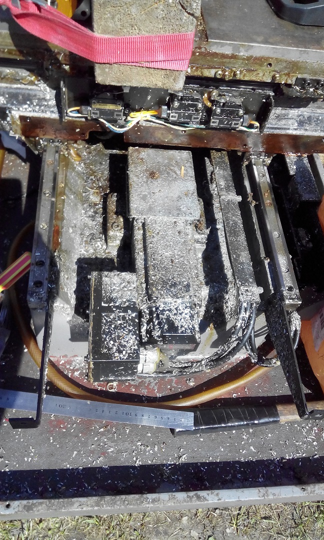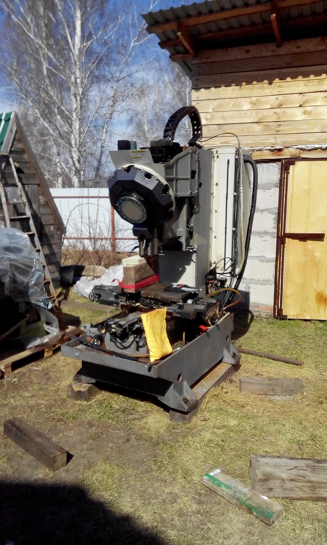 Затащили станок в помещение. Не проходил по высоте, пришлось снять серву на колонне. Стружки под защитой много. Очень пригодились грузовые тележки, которые я сделал.