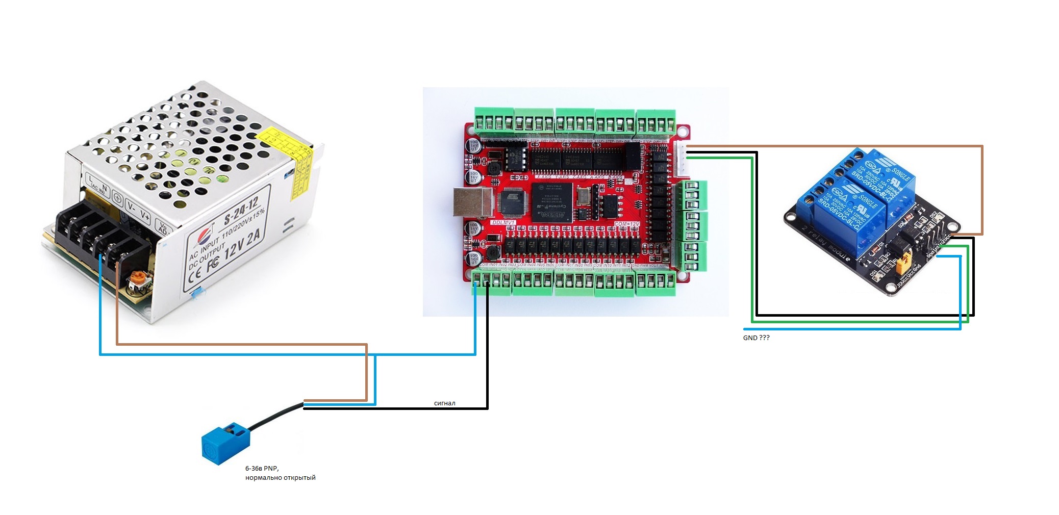 Вот собственно сама интерфейсная плата: Датчики индуктивные с питанием от 6 до 36 вольт тип датчика PNP ( на сигнальный провод идёт + напряжения) брал вот тут http://ru.aliexpress.com/item/FREE-ship ... wVersion=2. И ещё для реализации автоматического включения насоса охлаждения шпинделя и вытяжки купил 5-и вольтовый, двухканальный модуль реле вот тут http://ru.aliexpress.com/item/Free-Ship ... wVersion=2.