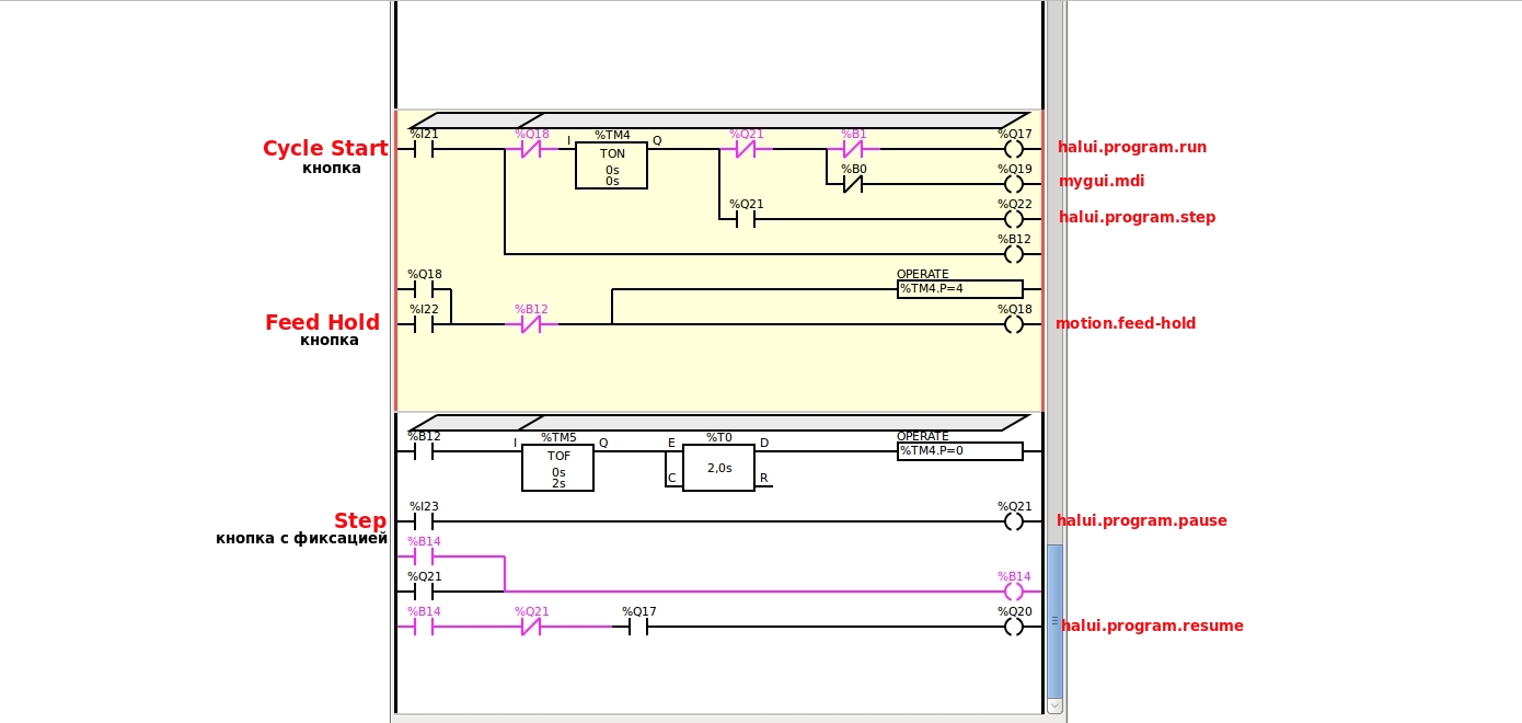 1. режим авто. нажали Cycle Start (%I21) - сработал (%Q17) - halui.program.run