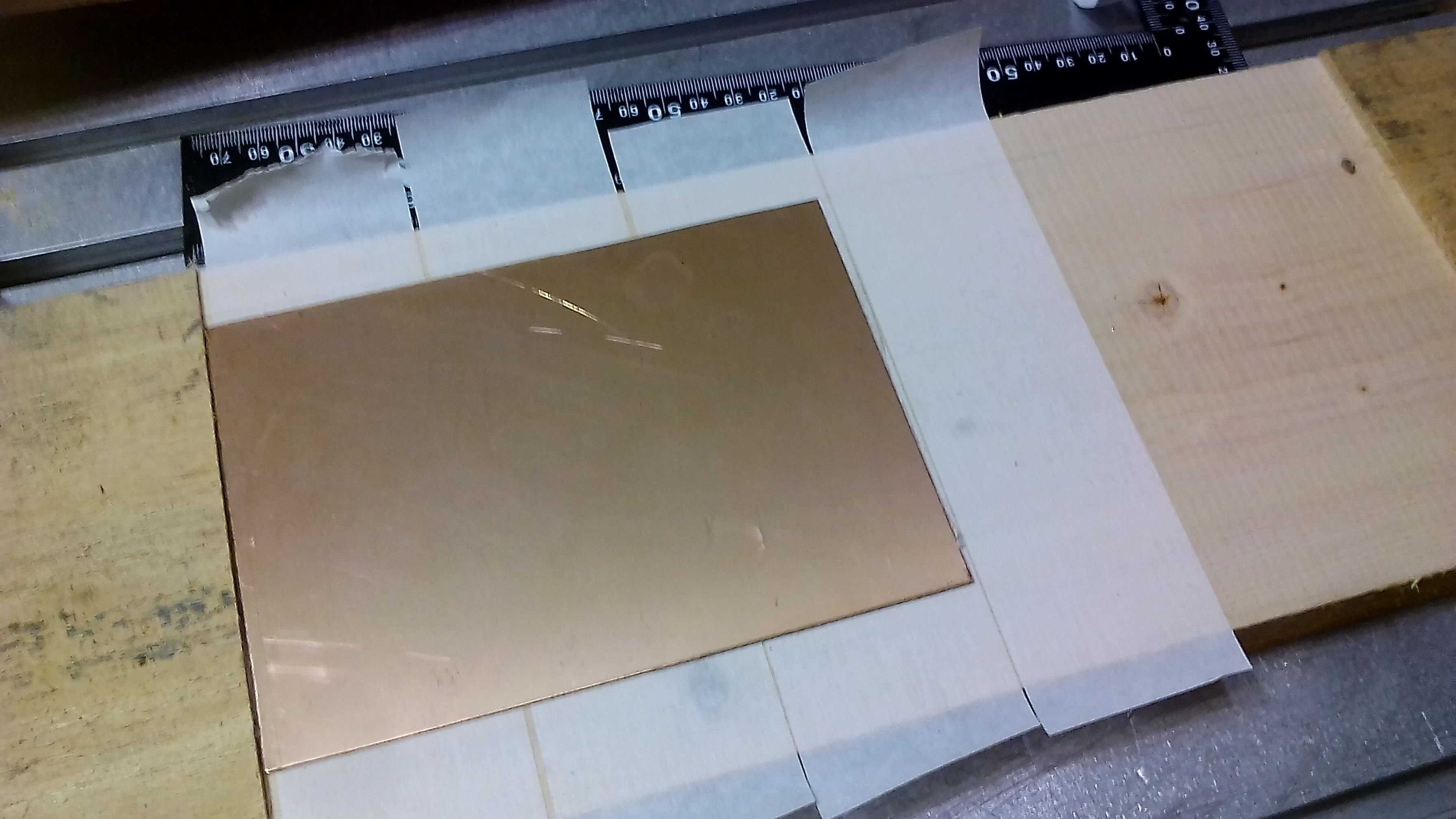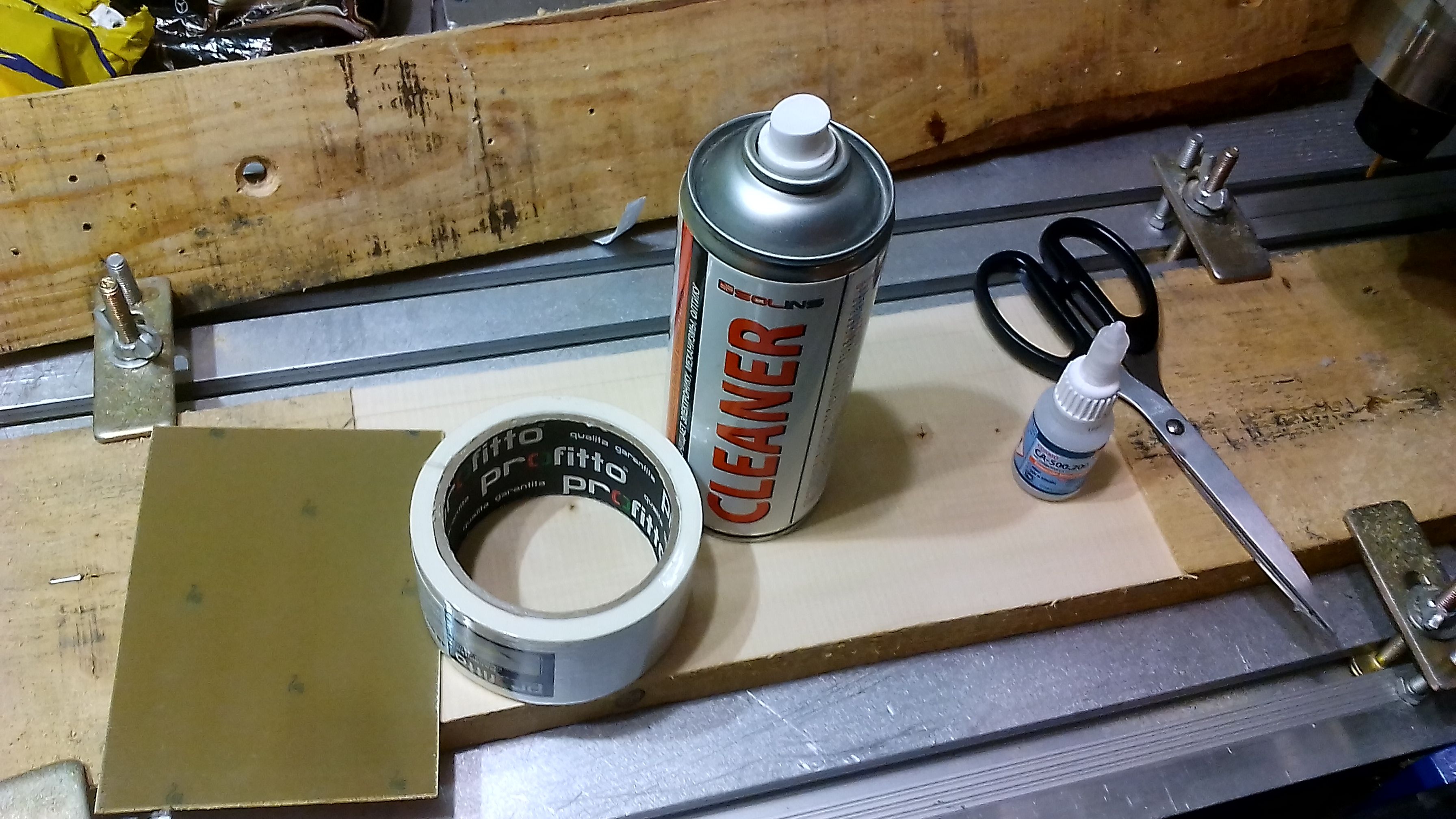 Заготовка: односторонний текстолит, толщина 1мм, размер ~ 100*150мм, выгнутая дугой.. с эффектом пропеллера.. углы в разных плоскостях.. . Клей - COSMO CA-500-200, скотч -Profitto