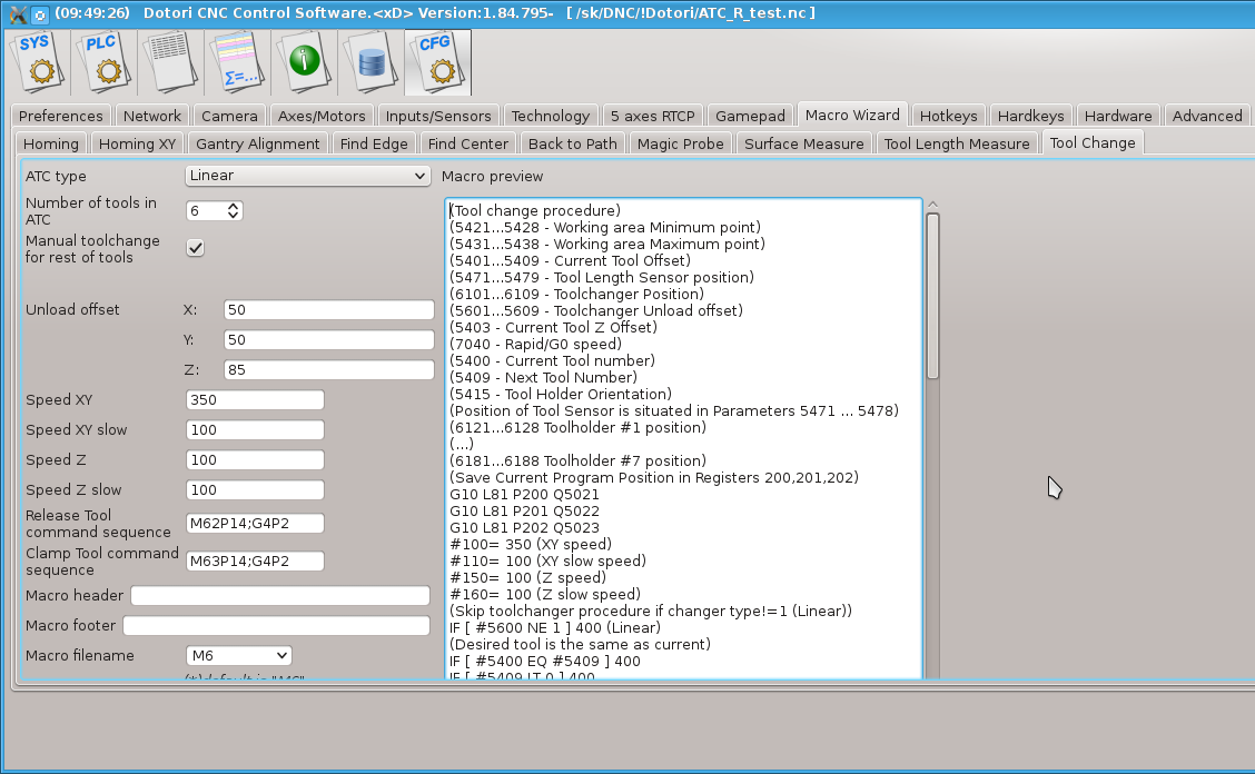 С тех пор в софте появился "Macro Wizard" и макрос для автосмены или кромкоискателя-центроискателя может быть сделан в несколько кликов мышью.