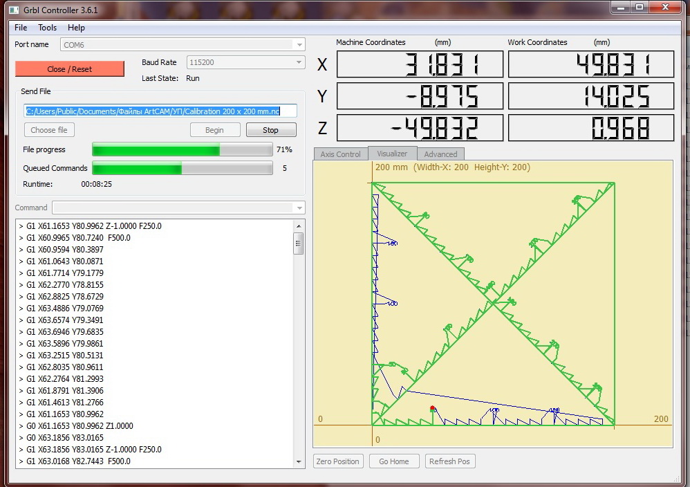 Обновился до прошивки 1.1.9 (17.05.2019) Включено 5х5 точек сканирование поверхности по заданным координатам. Так что можно будет и печатные платы гравировать, как тут: