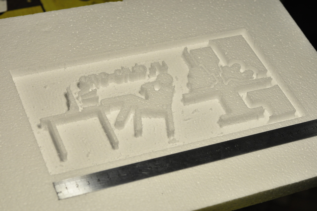 Размеры 270х140 мм, фреза 3,2мм время обработки 18 мин. Заглубление 11мм, материал пока пенопласт :) (это первый запуск станка :) ).