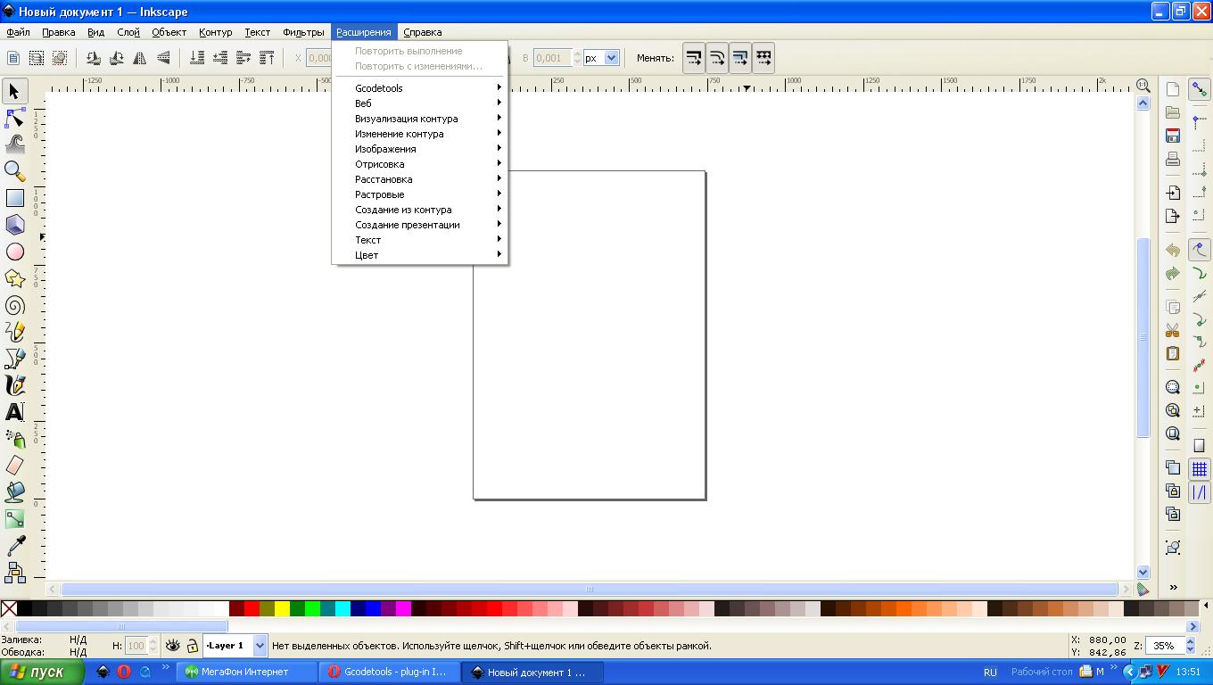 Но тут снова незадача: в программе Inkscape в меню Расширения почему-то не хватает одной строчки (функции).