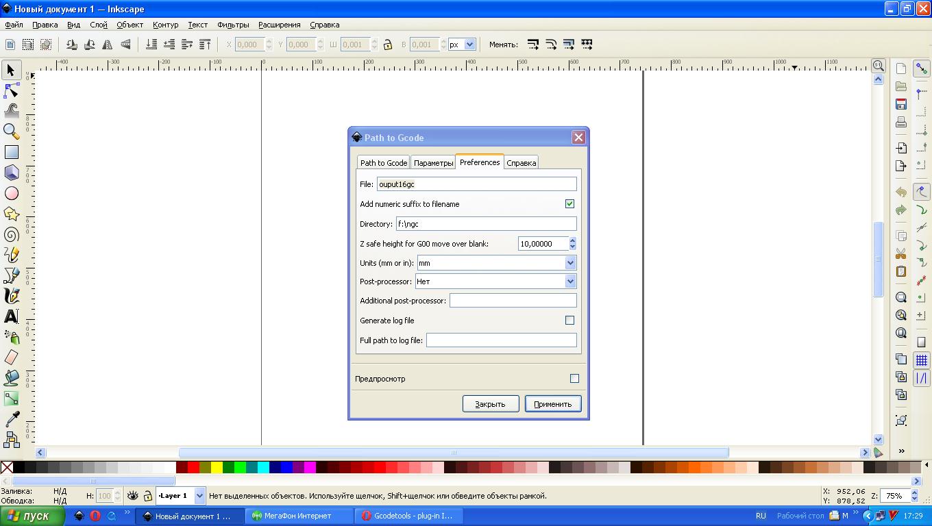 Gcodetools - plug-in Inkscape для экспорта в Gcode