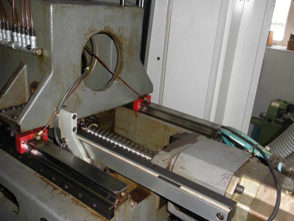 Вот так прижимается направляющая оси Y Вид сзади Направляющие оси Х прижимаются так. На моем станке сделано подобным образом, только прижимается не шайбами а планкой. Отверстия немного смещены и винтом с головкой впотай прижимается направляющая. Еще раз Y. Такой вариант также присутствует на моем станке. Z выглядит так, забыл сфоткать кишки без кожуха. Здесь расположен самодельный концевик 0 (home) . На этой модели станка нет ни одного физического концевика.