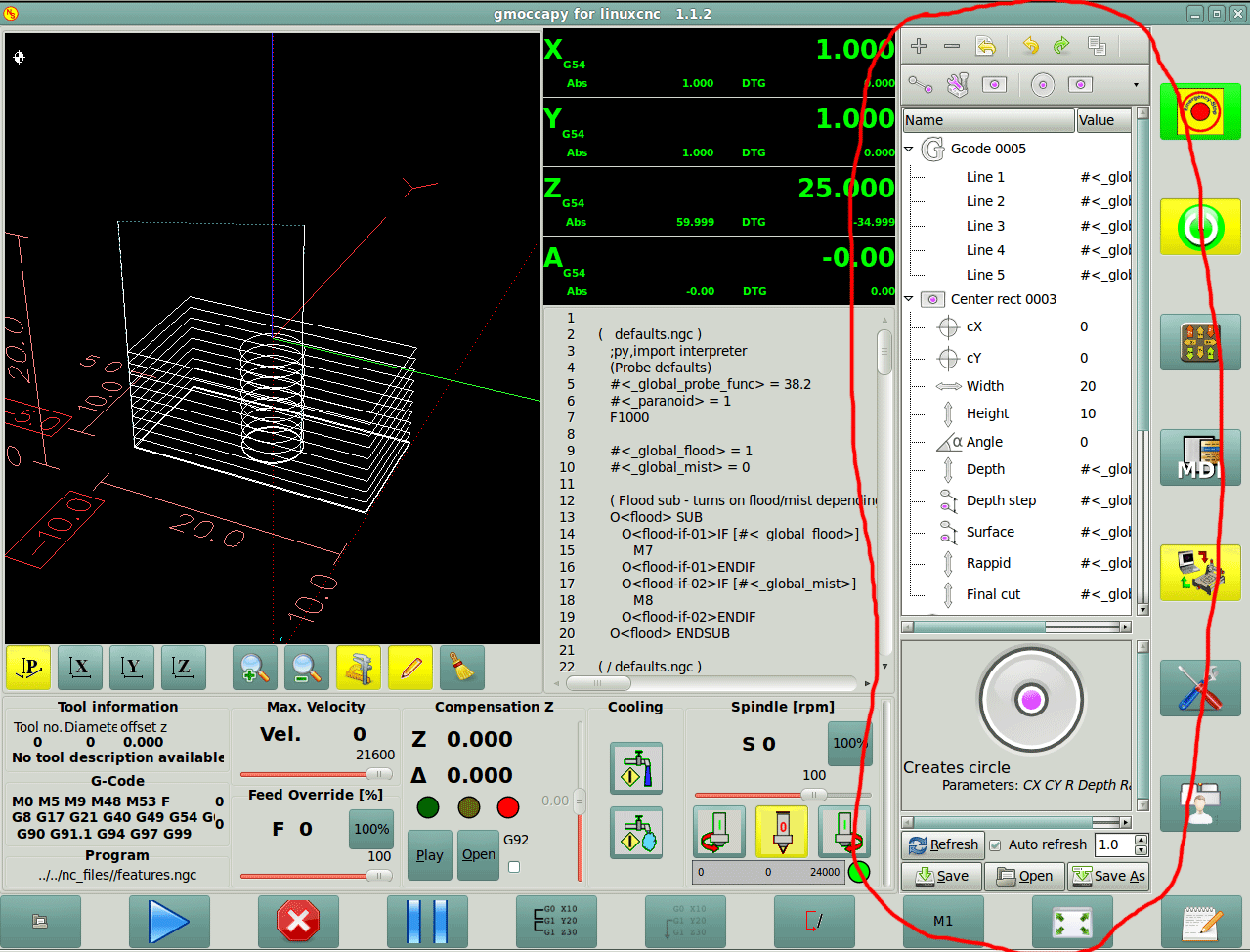 Эту функцию я здесь привел просто как пример для расширения gmoccapy. На мой взгяд этот интерфес - настоящий прорыв, начало которому положил разработчик Gscreen (ник cmorley). Интерфейс очень удобный, невероятно гибкий, ОТКРЫТЫЙ, постоянно добавляются новые функции.