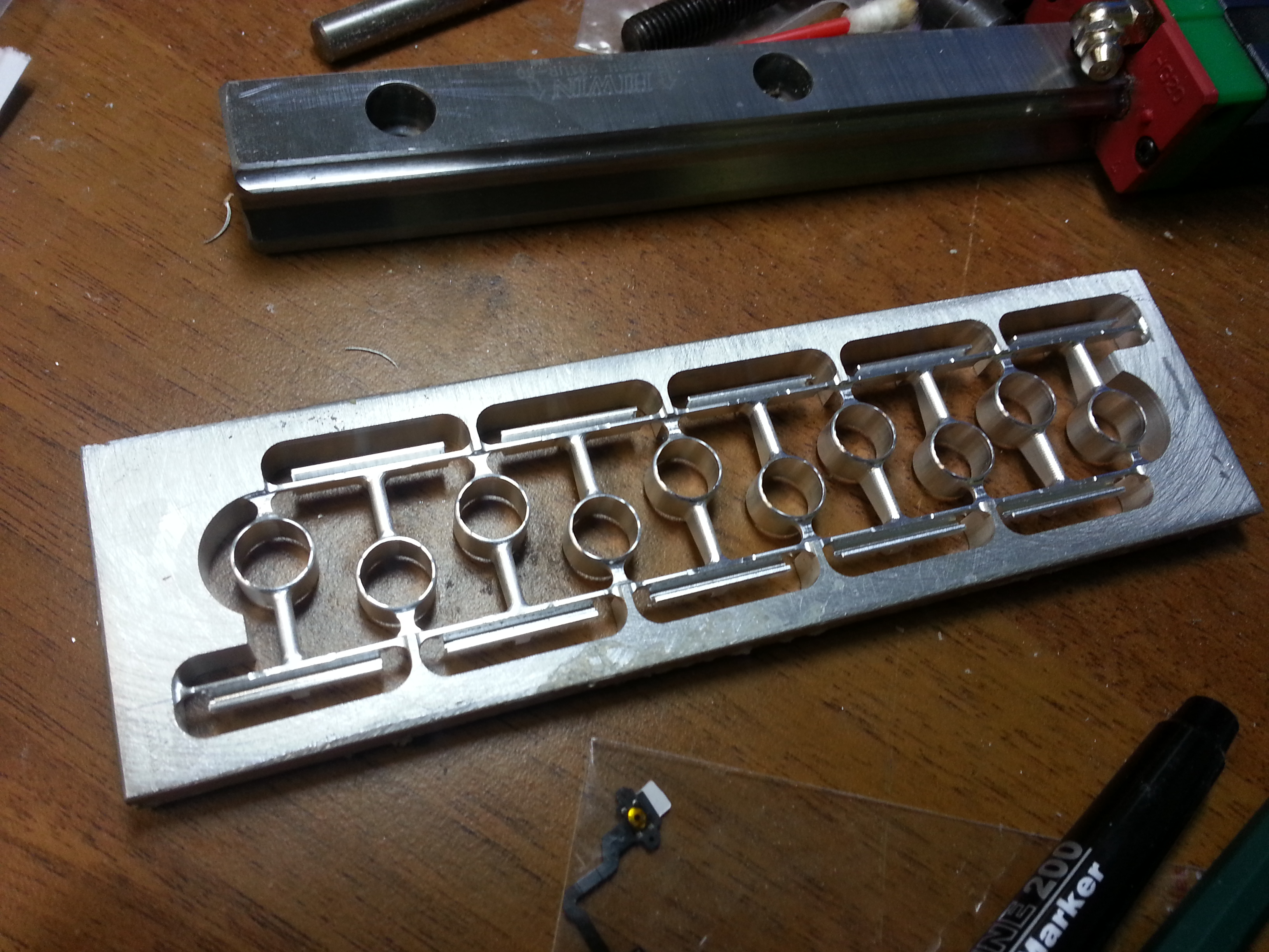 поковки были толщиной около 3мм фрезеровал с двух сторон на чпу обычной китайской двузубой фрезой до толщины 1мм и по контуру резал на чпу потом шкуркой и слегка протравил чтоб рисунок четче проявился