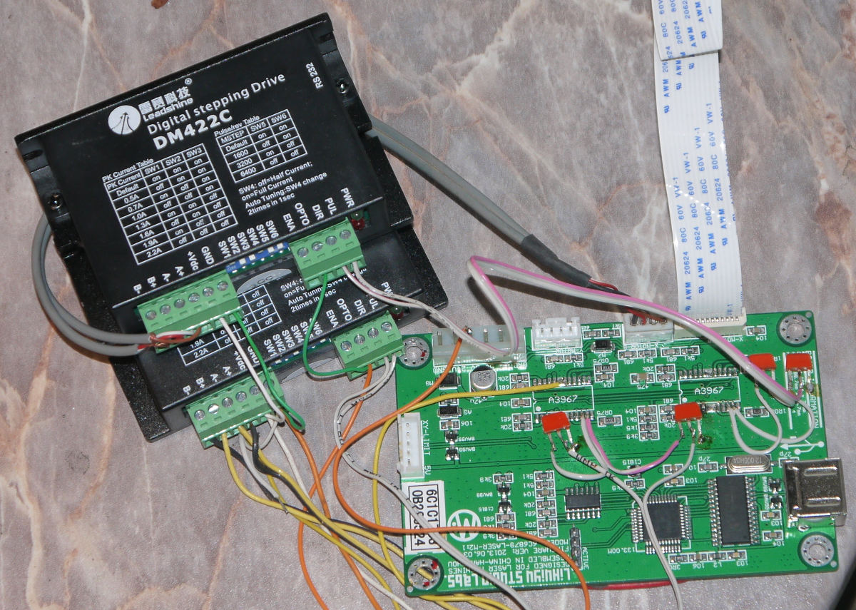 Ожидал увидеть улучшение работы - но не тут то было, всё заработало, но скорости не те. Я удивлялся, как крохотная микросхема без радиатора A3967 с током 750 мА даже таскает зеркало со скоростью 50 см\сек, это примерно 10 об/сек шаговика. Драйвер Leadshine DM422C такой скорости не может дать -срывается... :wik: