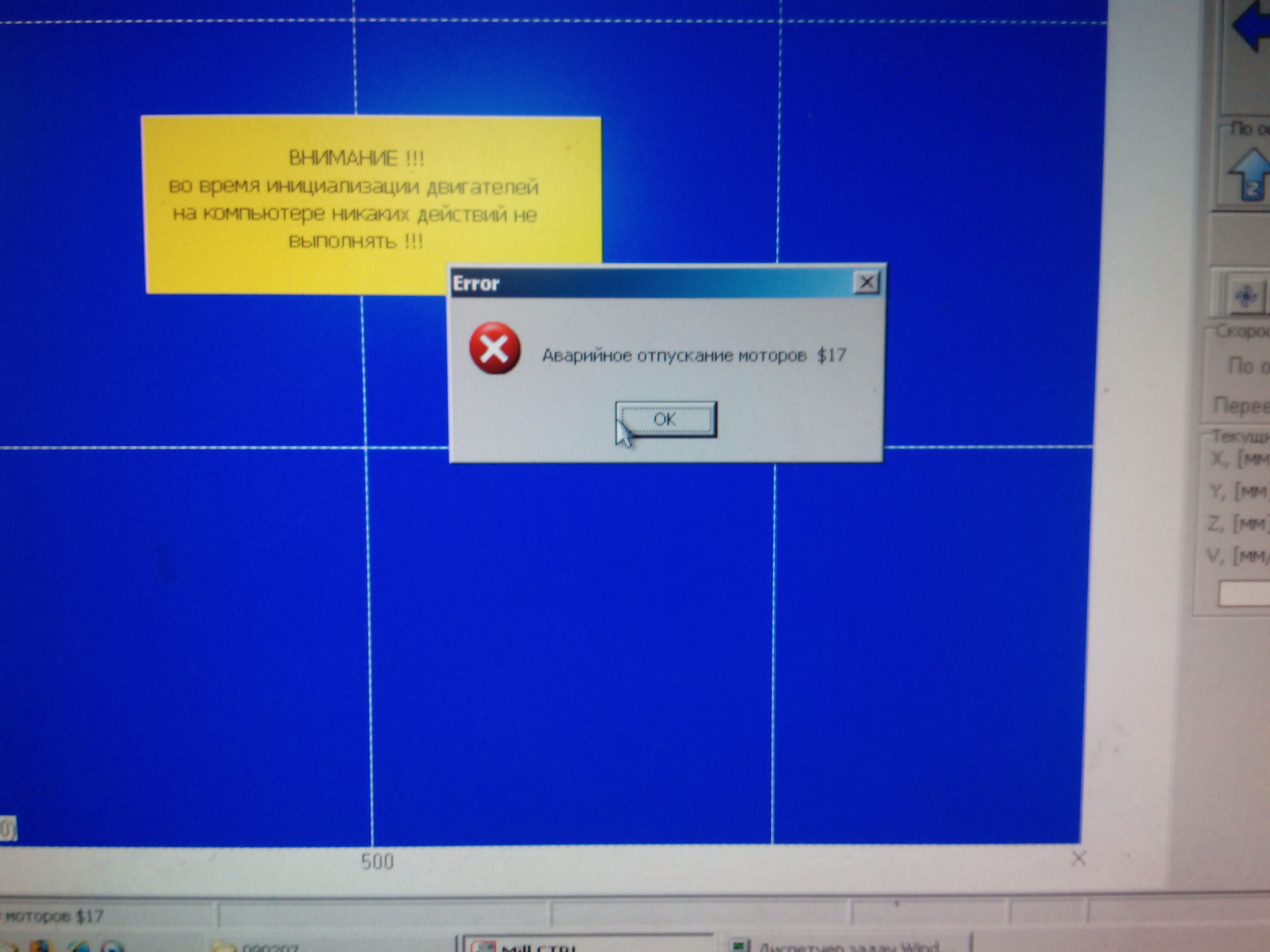 При попытке найти ноль выдает ошибку "Аварийное отпускание моторов $17"
