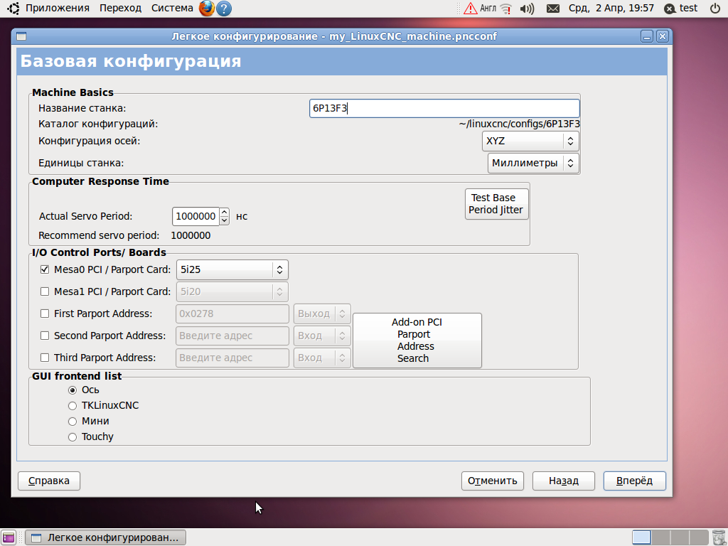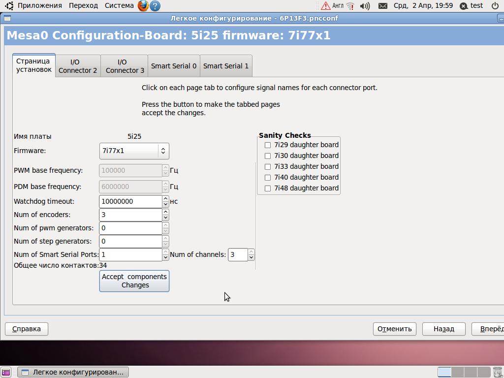 подключил платы Mesa и приступил к настройке через pncconf.