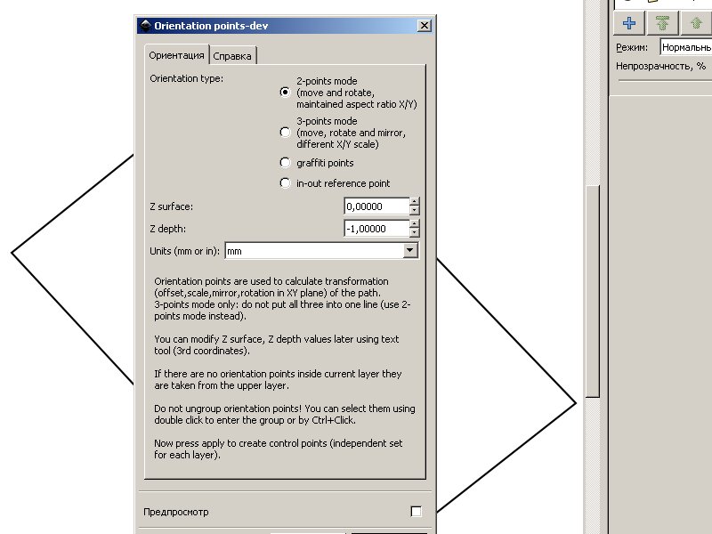 б) скриншот настроек из gcodetools