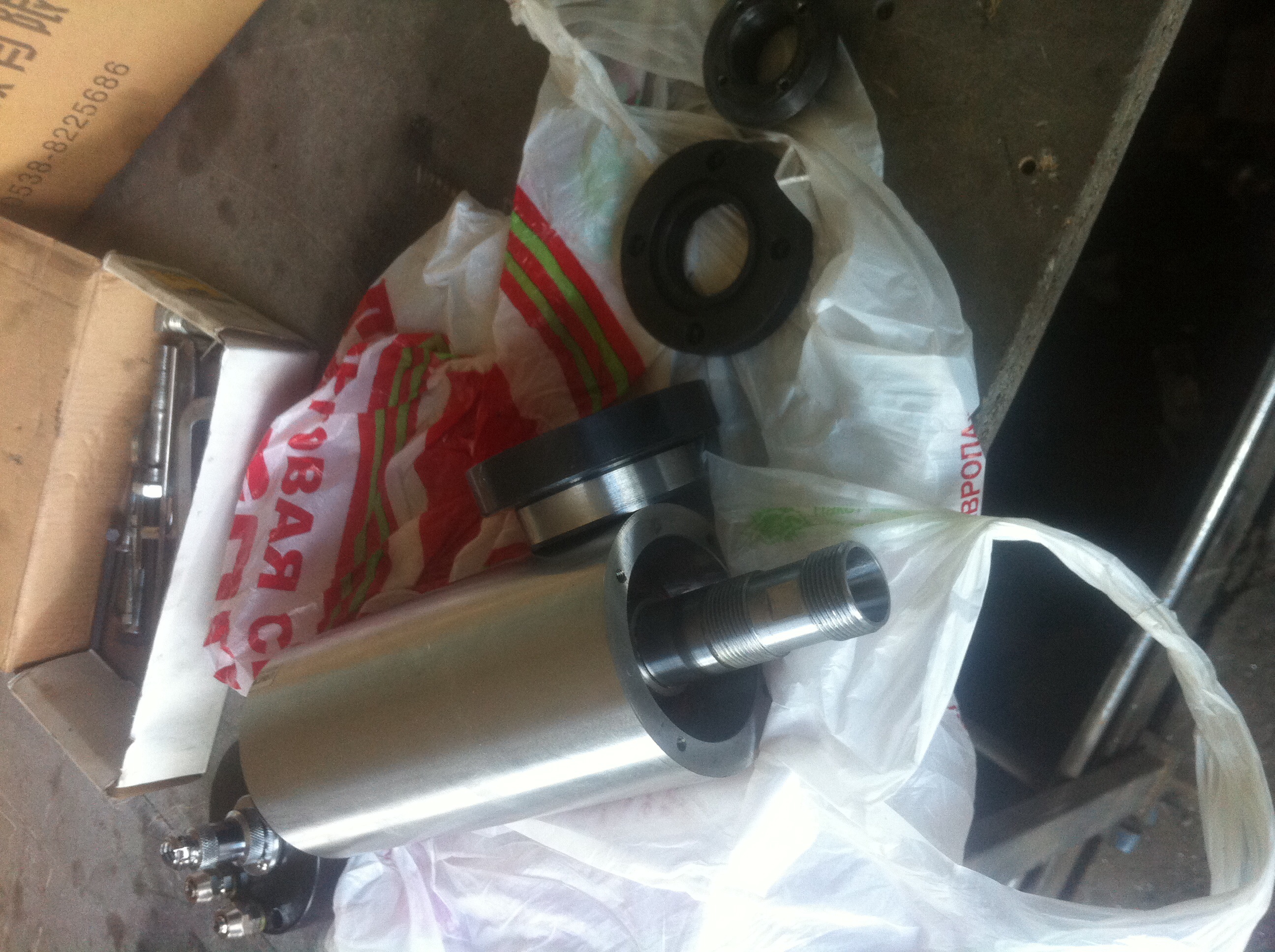 При установке штуцеров охлаждения в шпиндель немного лишка крутанул и один сломал. Резьба там М8х1 так что высверлить обычный болтик в качестве штуцера не вышло. Может есть от чегонить подходящий штуцер, я на время сколхозил из какой-то спецгайки от сварочной горелки но не нравится мне.