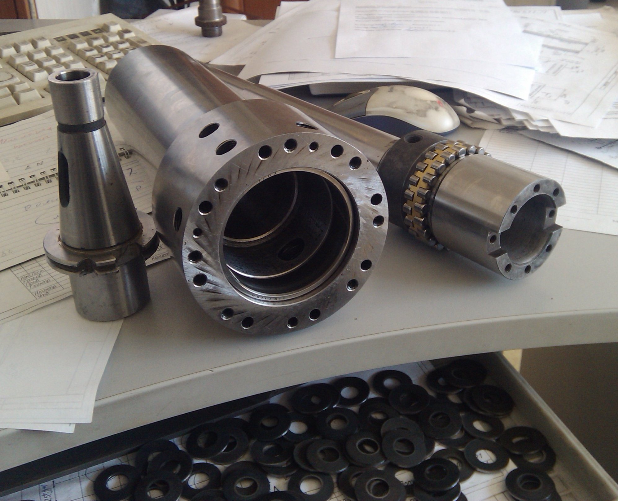 Сам шпиндель 20хгт с цементацией твердость на поверхности 58-60 HRC. Шлифованный везде конус под инструмент будет шлифоватся в сборе.
